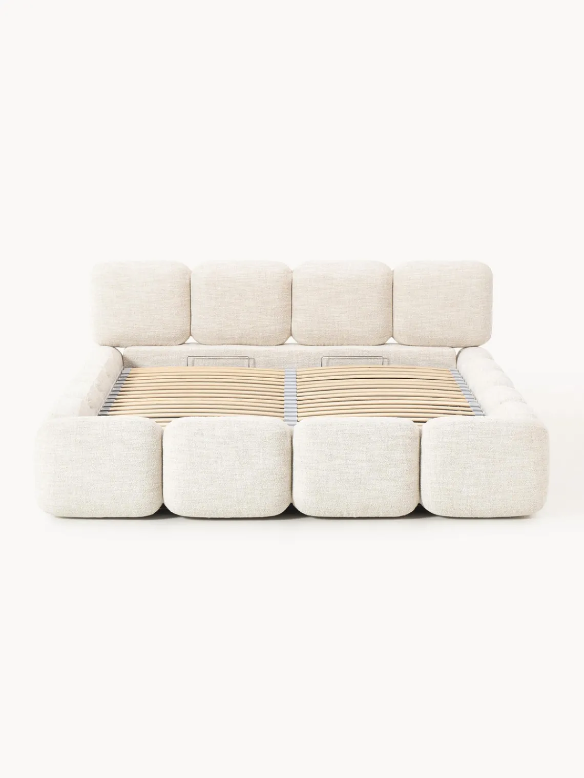 Cama tapizada con espacio de almacenamiento.