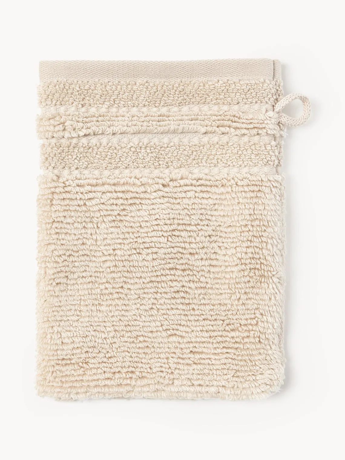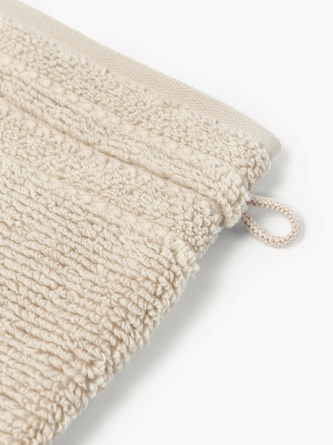 Las manoplas de baño tienen un lazo para colgar. Hecho en Portugal.