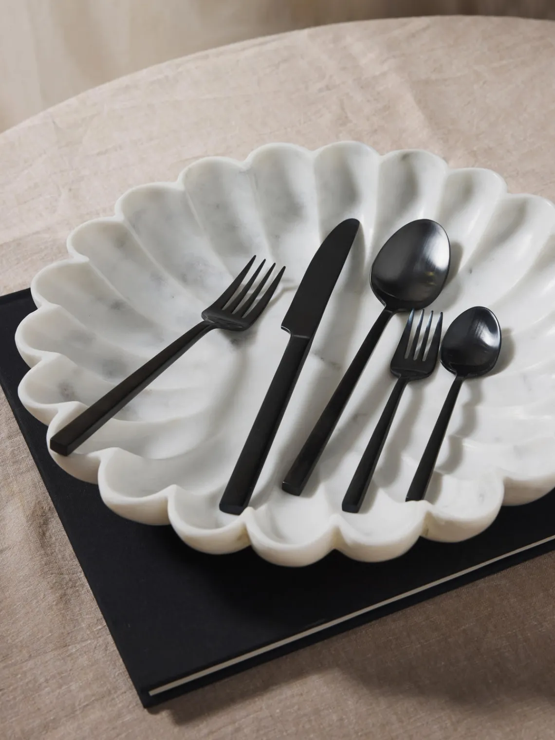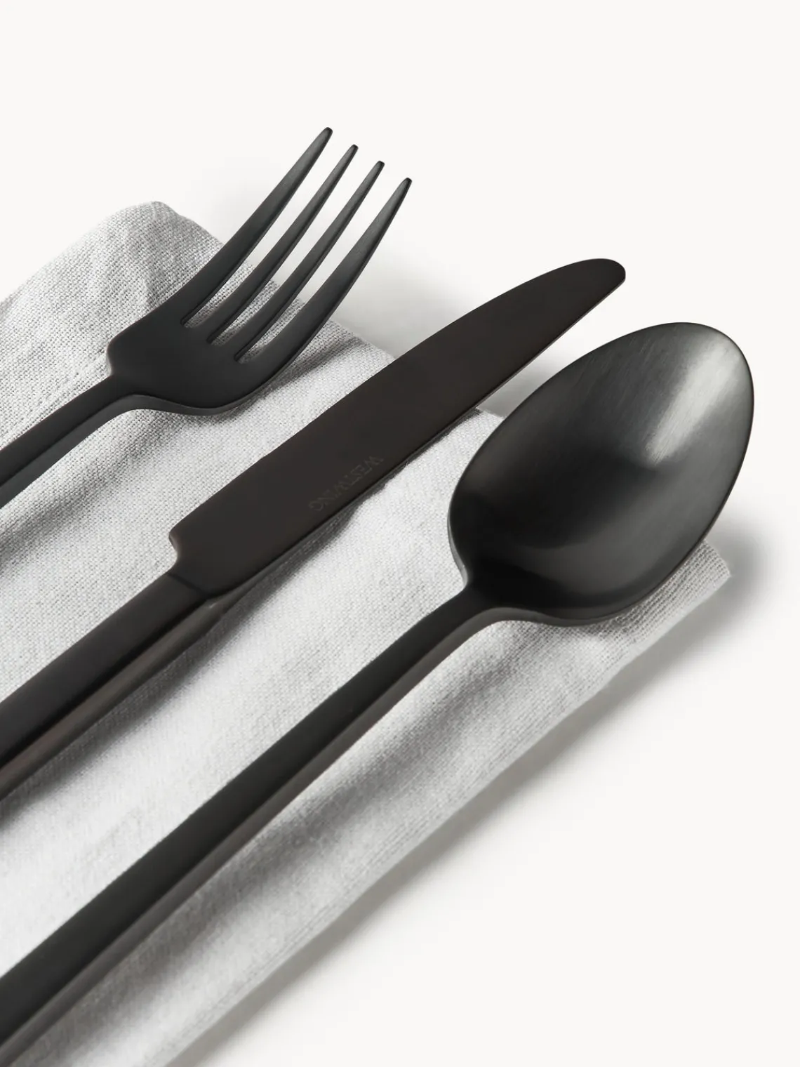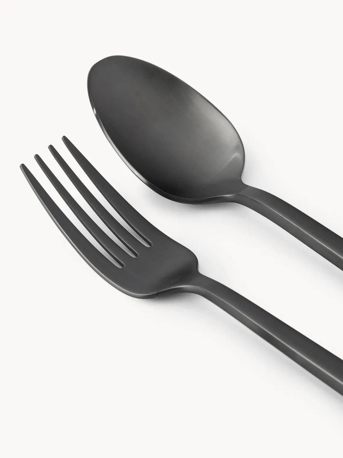 Este set de cubiertos de 5 piezas con superficie cepillada mate consta de cuatro tenedores de mesa, cuatro cuchillos de mesa, cuatro cucharas de mesa, cuatro tenedores para pasteles y cuatro cucharillas.