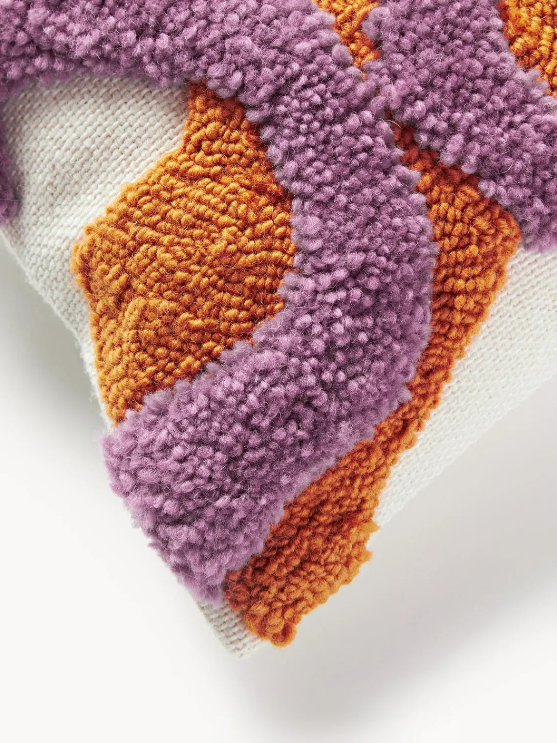Mantas|Cojines Decorativos>Westwing Collection Funda de cojín grande artesanal con tejido capitoné Jiri Blanco Off White, lila, naranja