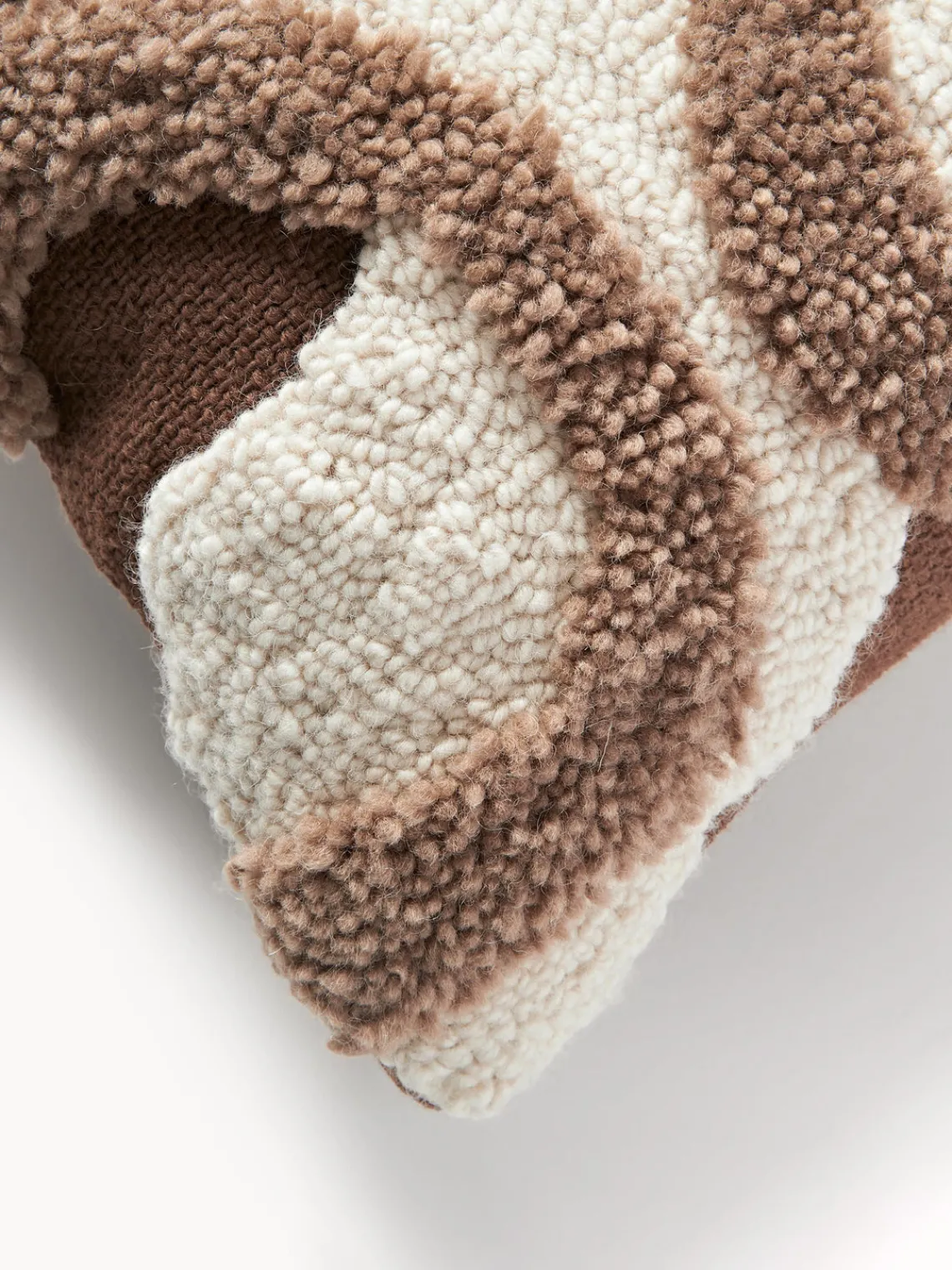 Mantas|Cojines Decorativos>Westwing Collection Funda de cojín grande artesanal con tejido capitoné Jiri Marrón oscuro, blanco Off White, marrón claro