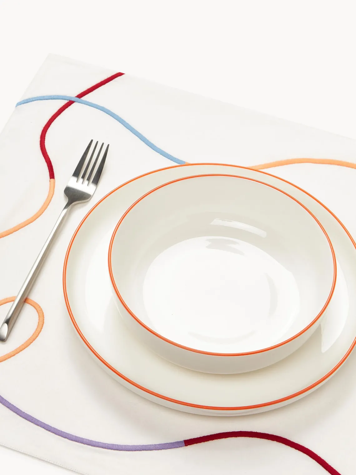 Manteles Individuales|Manteles Individuales>Westwing Collection Manteles individuales con bordado abstracto Sue, 2 uds. Blanco Off White, multicolor