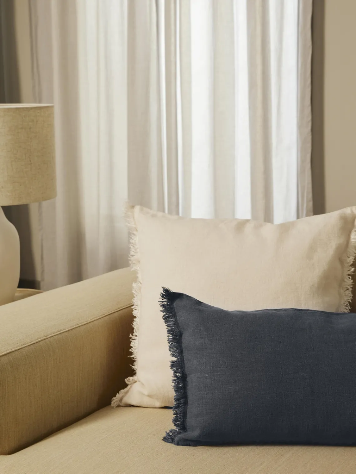¡Nunca te vas a cansar de LUANA! Las fundas de cojines hechas de nuestro tejido favorito de lino simplemente se ven bien en todos sus colores. Gracias al grosor irregular del hilo, la fibra natural les da un aspecto casual y al mismo tiempo elegante que llamará la atención de todos y completa cualquier estilo de decoración, desde moderno-urbano hasta rústico. ¡No podría ser mejor!