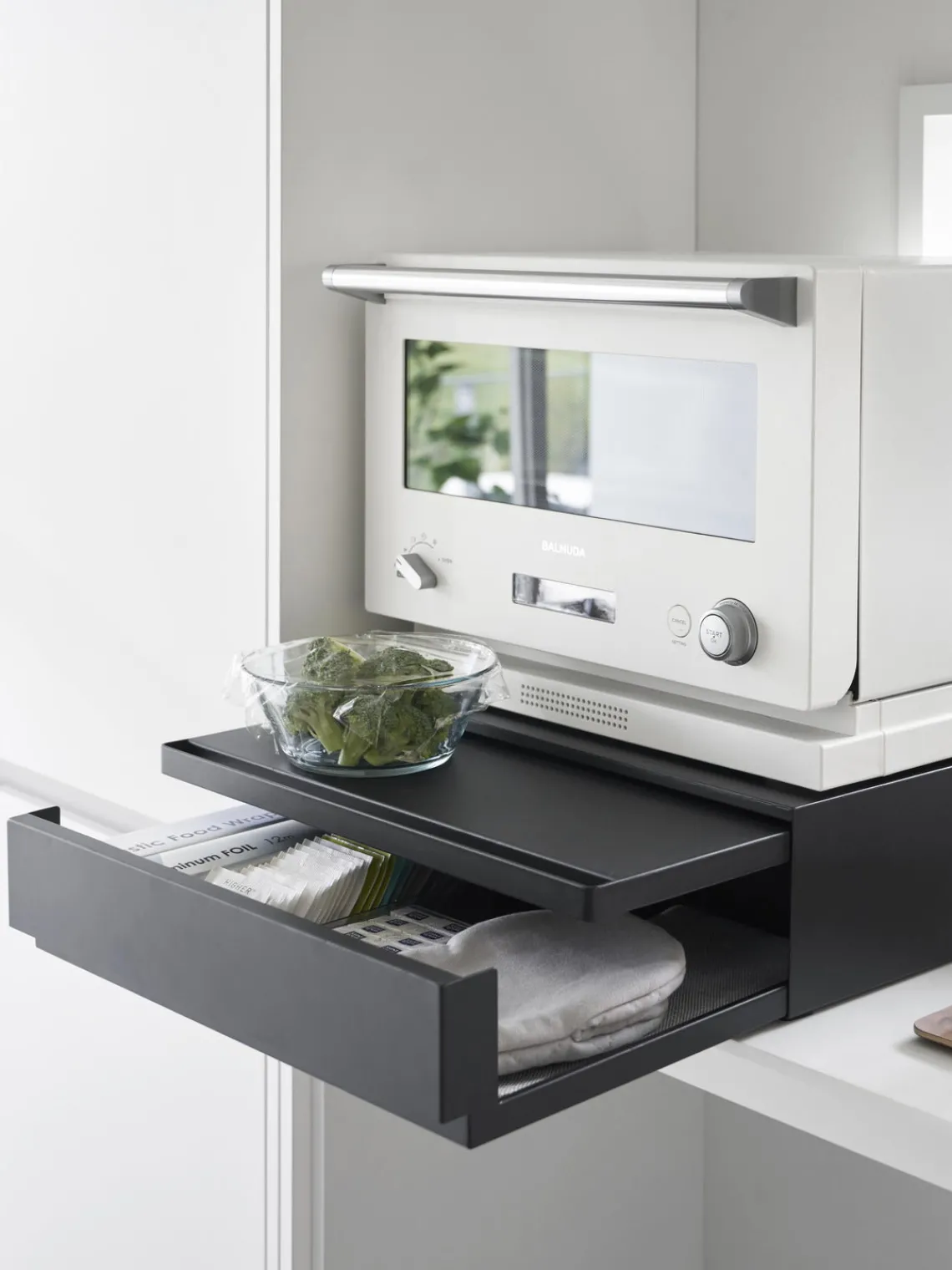 Este estante de almacenamiento maximiza el espacio de la cocina y mantiene todo lo que necesitas al alcance de la mano. Cuenta con un estante extraíble y un cajón que es fácil de mover y ofrece opciones de almacenamiento flexibles para una superficie de trabajo ordenada.
