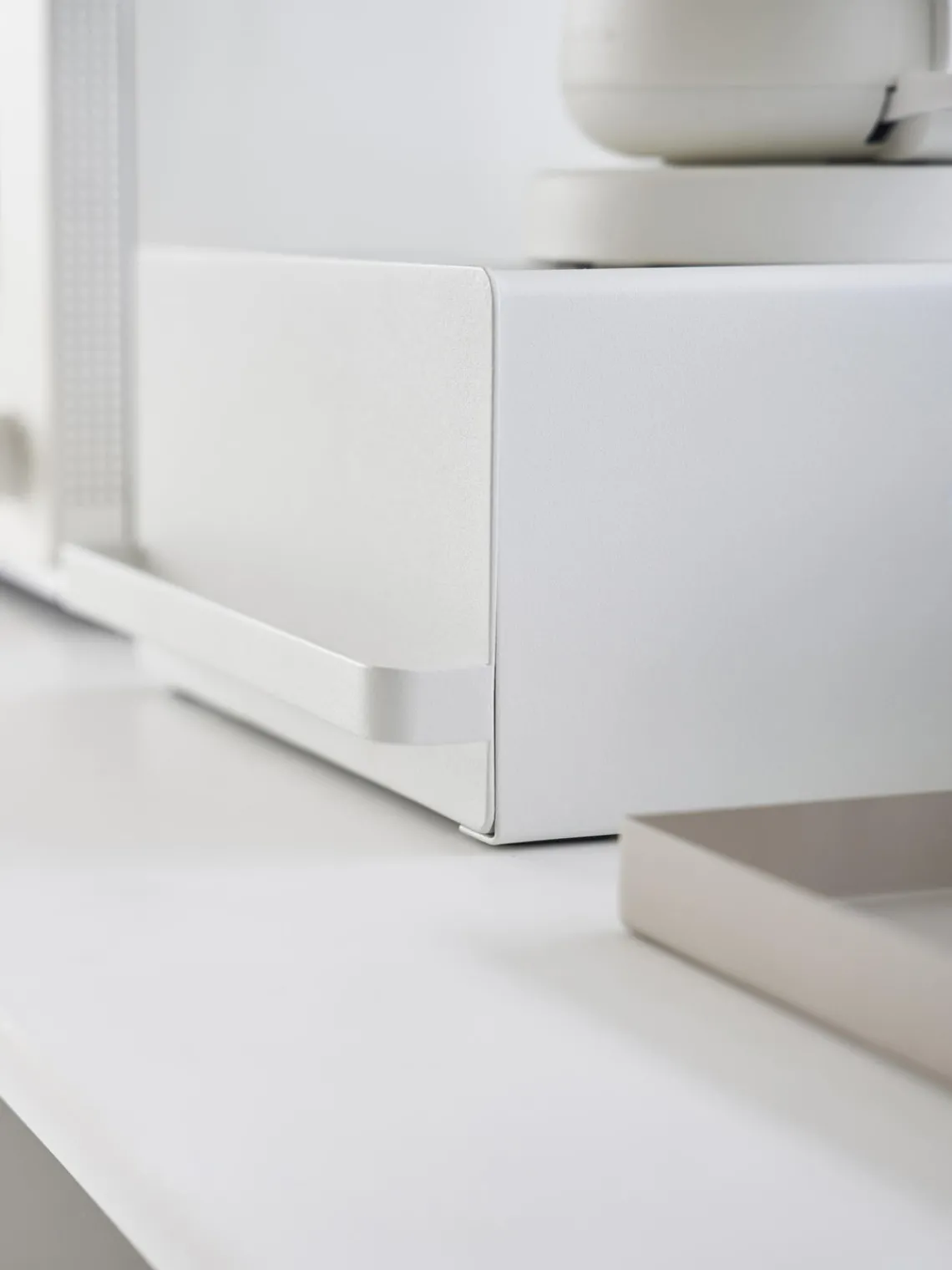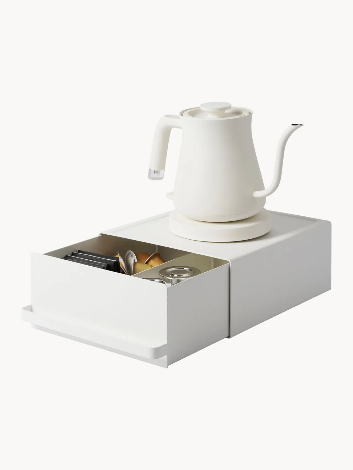 Esta estantería es una solución práctica para organizar el mueble de cocina. El cajón con divisor ajustable es ideal para guardar bolsitas de té o café, mientras que el estante ofrece espacio para los electrodomésticos de la cocina.