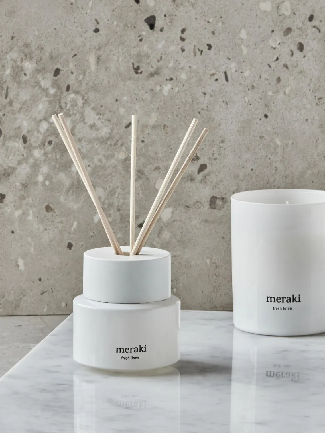 Ambientadores|Jarrones>Meraki Ambientador Fresh Linen (jazmín & romero) Botella: blancoPalillos: beige