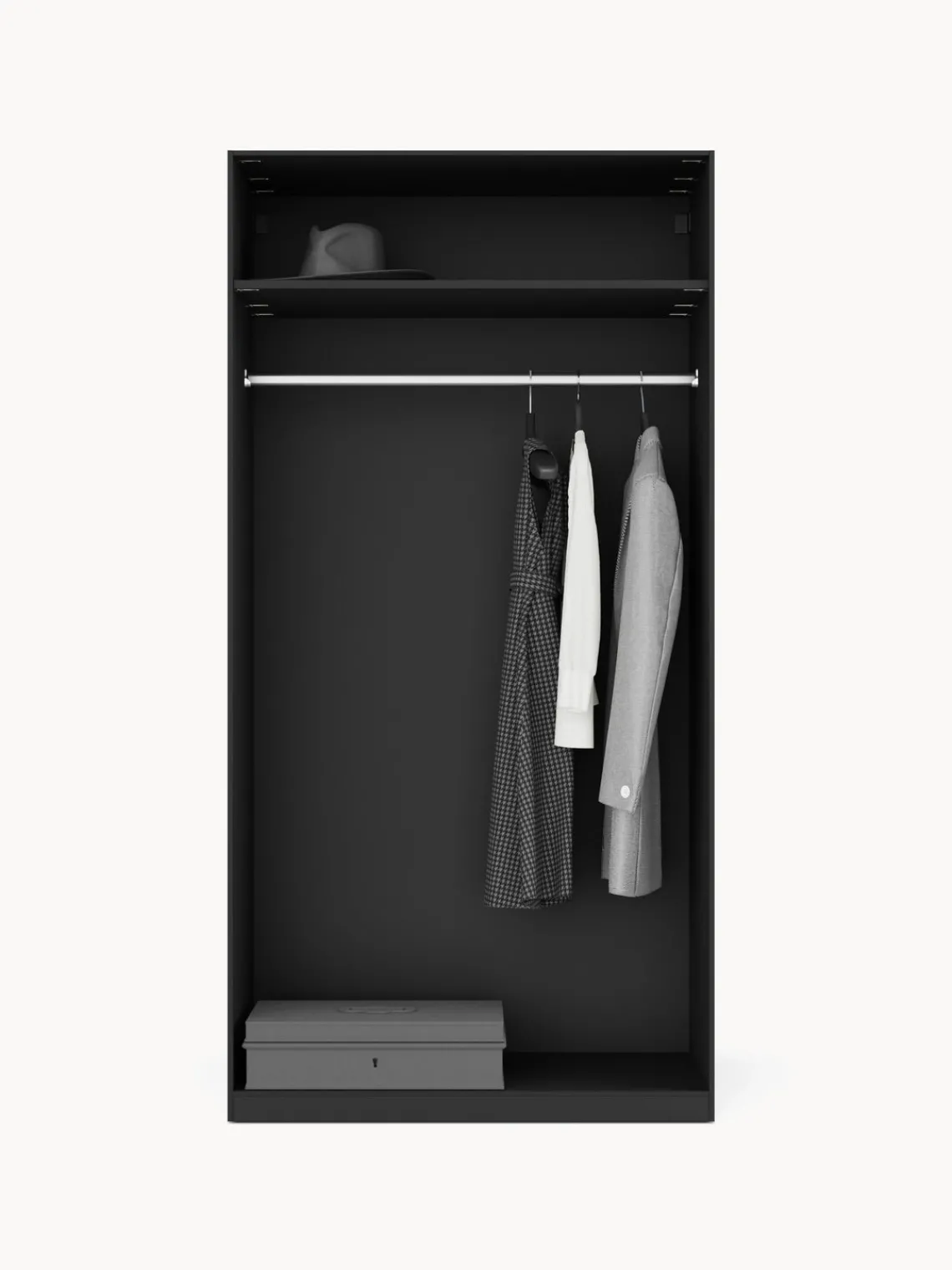 – Armario modular que consta de 1 módulo con diseño interior Basic que incluye 1 barra para colgar ropa y 1 estante