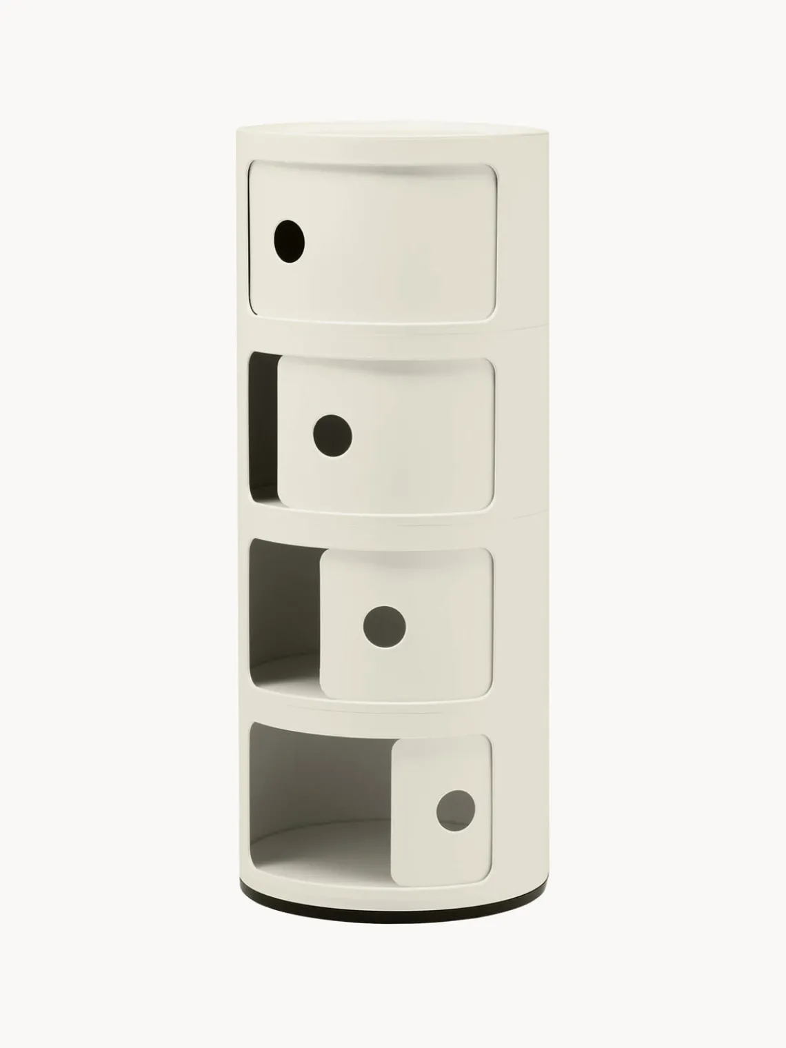 Diseñado originalmente por Anna Castelli Ferrieri en 1967, los muebles Componibili son un clásico del diseño de interiores. Gracias a las composiciones de dos, tres y cuatro compartimentos, son tan funcionales como prácticos en cualquier ambiente.