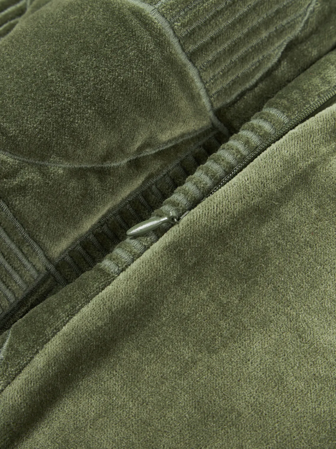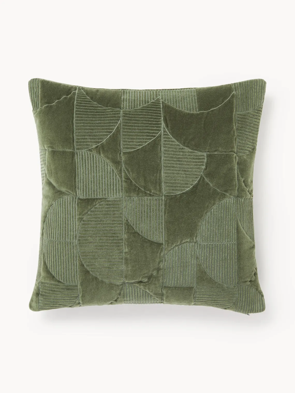 Con VERINA hemos creado un cojín decorativo que impresiona con su moderno estampado geométrico bordado en la parte delantera de terciopelo. La parte trasera de terciopelo monocromático ofrece una elegancia atemporal y la cremallera oculta en la parte inferior garantiza un aspecto impecable. ¡Añade este elegante toque a tu hogar!