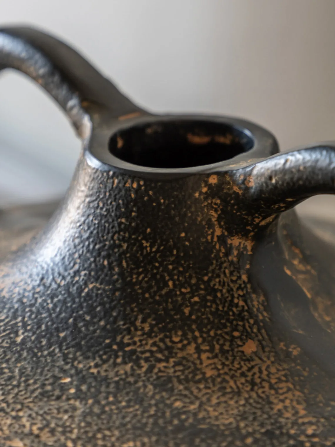 El jarrón de diseño GOBI presenta un acabado envejecido en ricos tonos negros y bronce que añade profundidad y calidez a cualquier espacio. Fabricado en aluminio fundido, el jarrón presenta una silueta escultórica con dos asas, lo que añade un toque atrevido y artesanal a los interiores modernos y eclécticos.