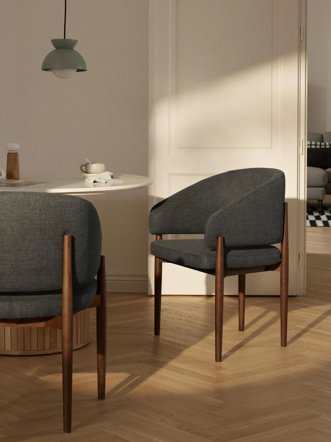 La silla NEMO, una celebración de la artesanía y la claridad, destila diseño en su forma más pura. Con una silueta refinada tallada en madera maciza de fresno, NEMO ofrece una presencia escultural que se siente atemporal y contemporánea a la vez. Cada curva se ha tenido en cuenta, desde los reposabrazos suavemente inclinados hasta las patas sutilmente anguladas, creando una composición equilibrada de elegancia y fuerza. El asiento tapizado añade una suavidad táctil a la estructura arquitectónica, invitando a la comodidad sin comprometer la expresión minimalista de la silla. Tanto si se coloca en la mesa del comedor, en un rincón de lectura o como una declaración de diseño independiente, NEMO aúna a la perfección función y forma: un icono silencioso para interiores exigentes.