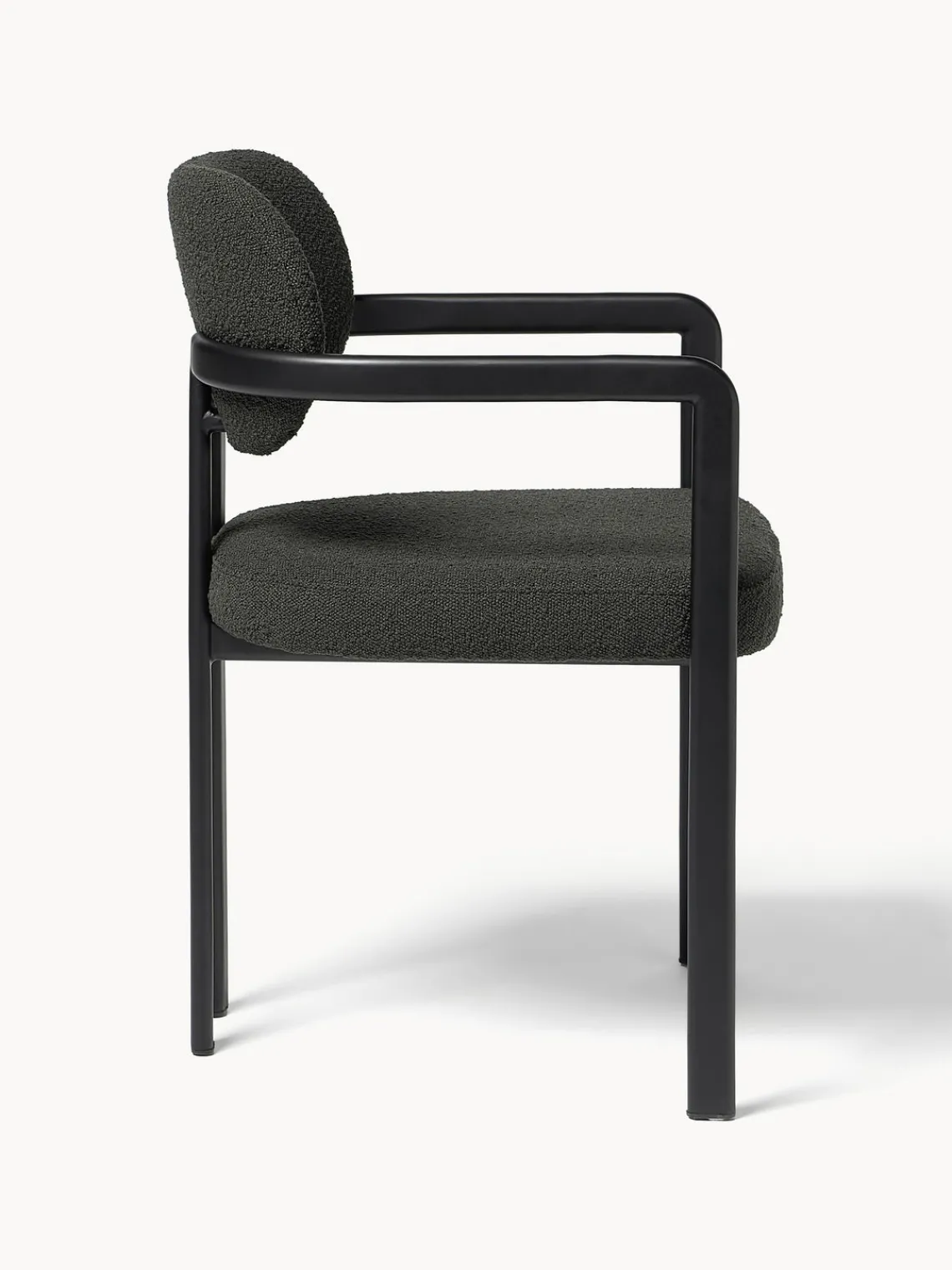 El sillón ADRIEN es una clase magistral de contraste: mezcla influencias de mediados de siglo con minimalismo contemporáneo para crear una pieza que se siente atemporal y claramente moderna. Su envolvente silueta de inspiración retro está envuelta en bouclé táctil, que suaviza la atrevida geometría con una sensación de tranquilo lujo. La curva continua desde el brazo hasta el respaldo crea un flujo escultural, mientras que su tamaño compacto y los detalles reducidos le confieren una claridad elegante y arquitectónica. ADRIEN aporta armonía, carácter y una estética refinada a cualquier interior. Una declaración de forma y comodidad en perfecto equilibrio.