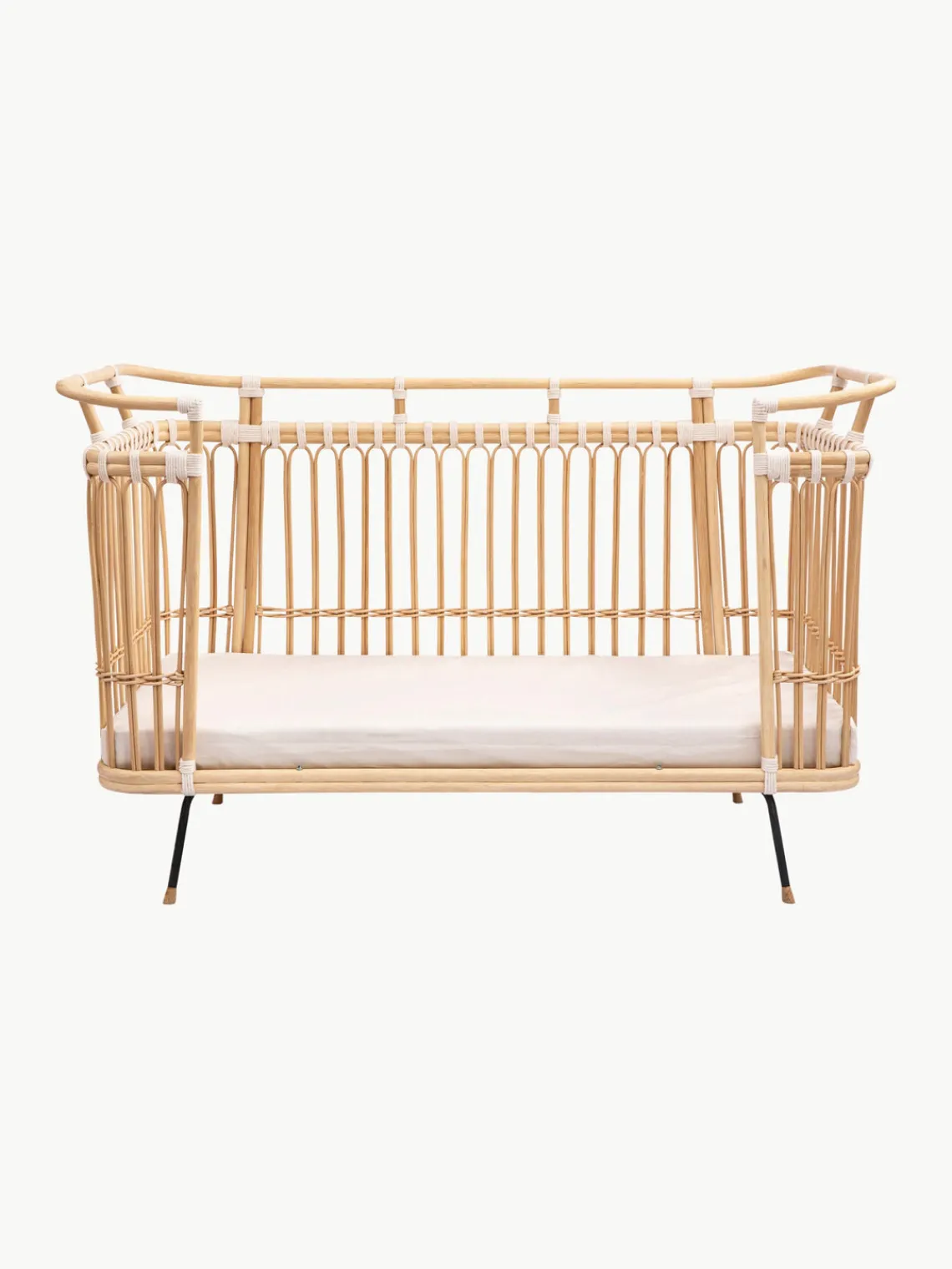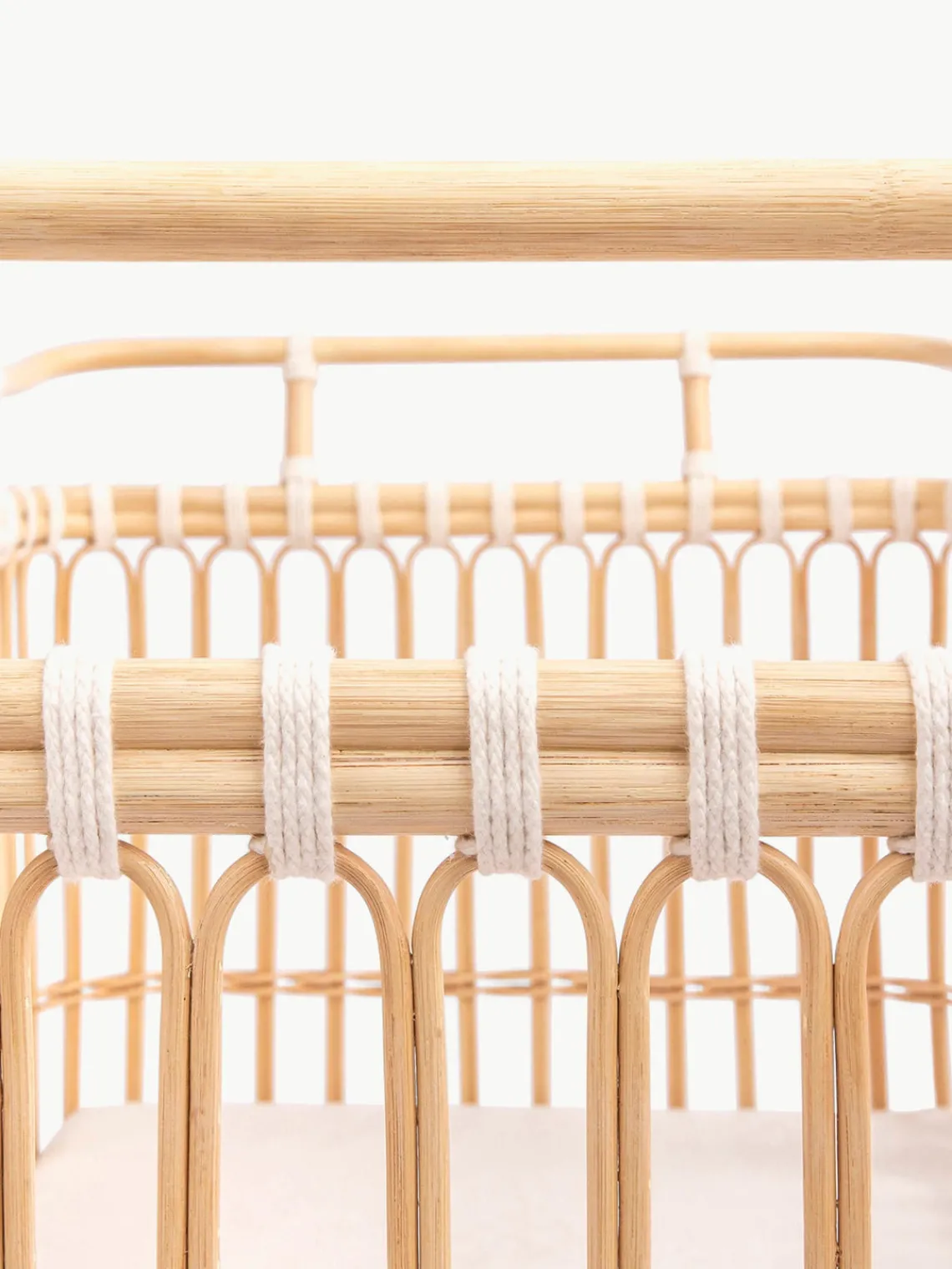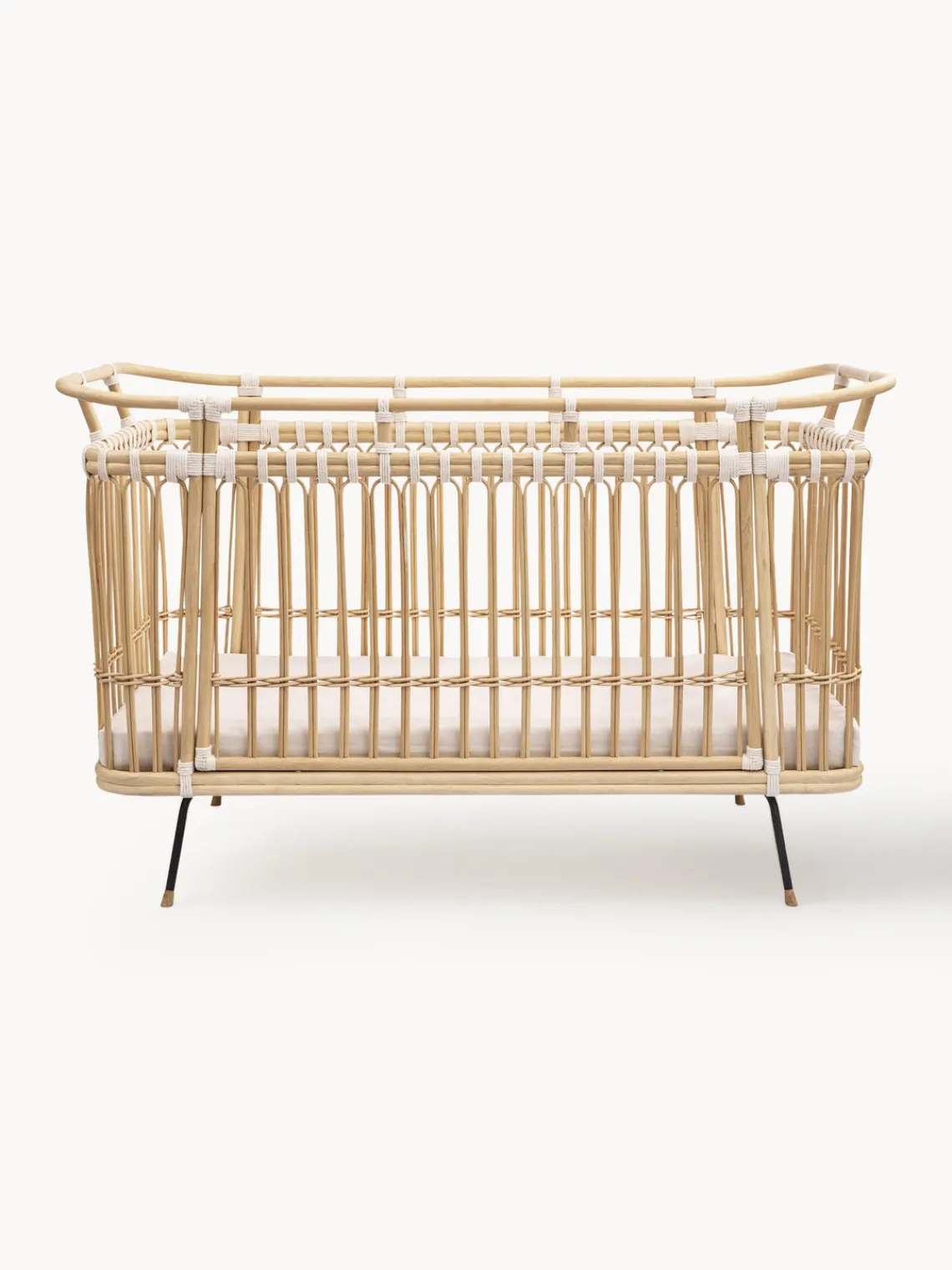 Como el resto de camas, PAUL también combina su ligereza con una gran estabilidad. En este caso, en particular, las patas de acero y madera de mango armonizan perfectamente con la forma de la cama. Se trenzaron cuerdas de algodón en forma de cruz alrededor de los palos de ratán. Como ocurre con el resto de modelos, el cuerpo y las patas se unen mediante tornillos.