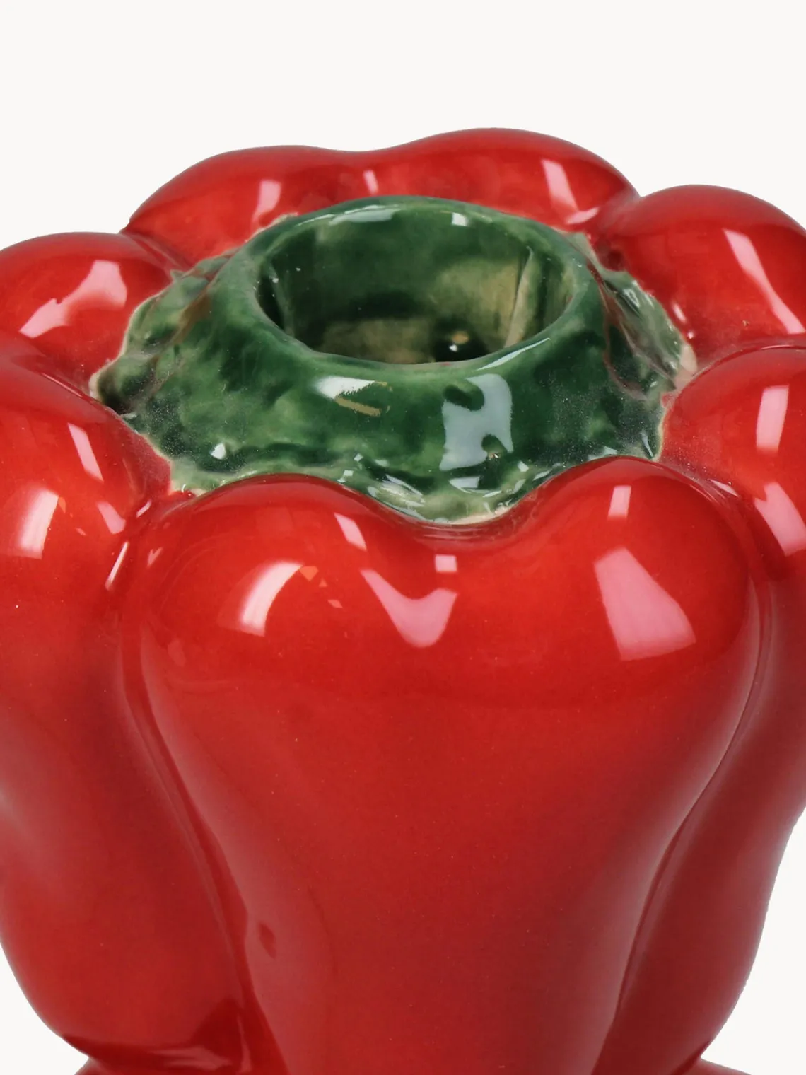 El candelabro SENDI aporta un toque divertido a tu hogar e impresiona con su especial diseño en forma de pimiento. Con su alegre aspecto, será un elemento destacado en tu mesa de comedor.