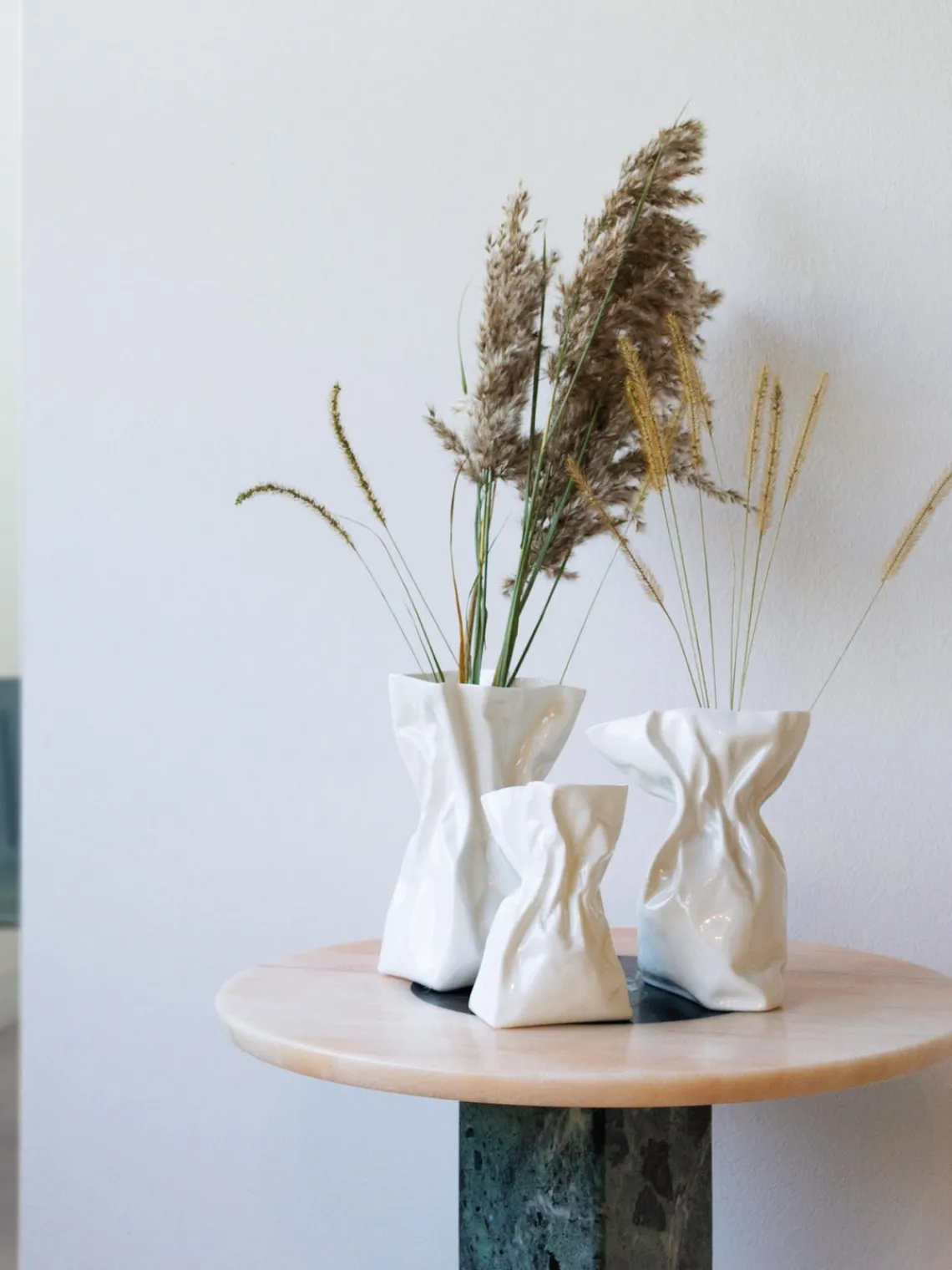 El jarrón ADELAIDE impresiona por su forma única y fluida. Inspirado en el papel arrugado, aporta un toque de escultura moderna a tu hogar. Un objeto de diseño fascinante que irradia una fuerte presencia incluso sin flores.