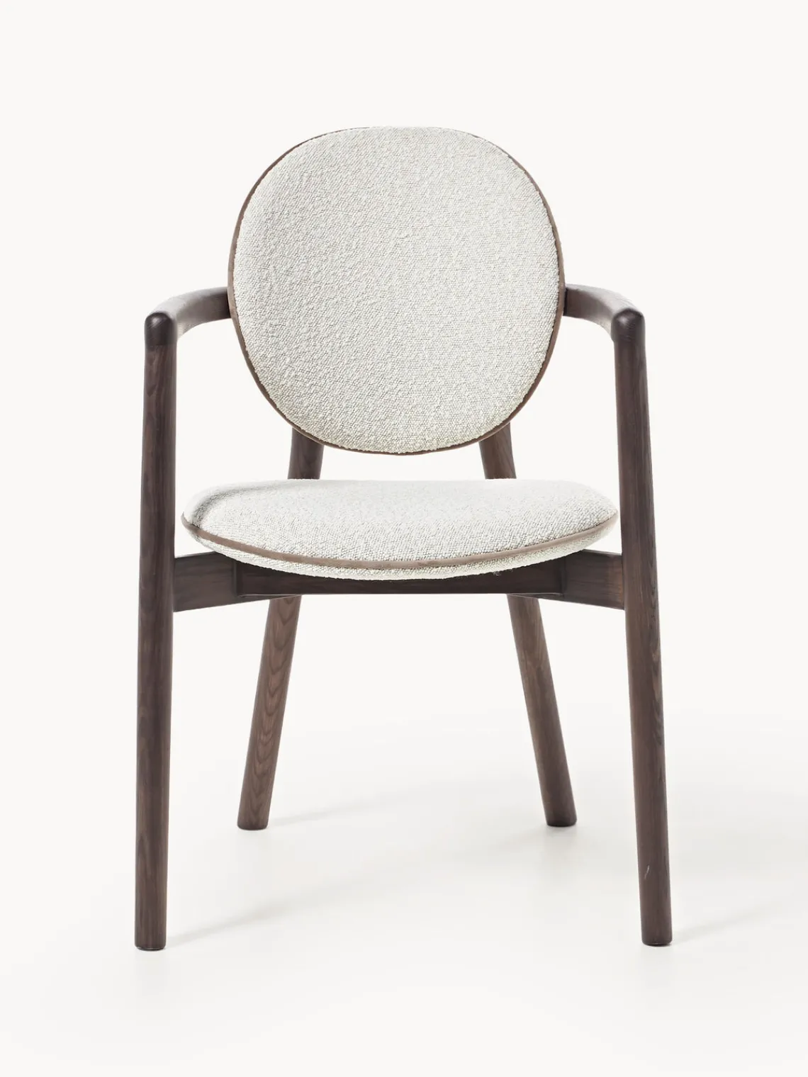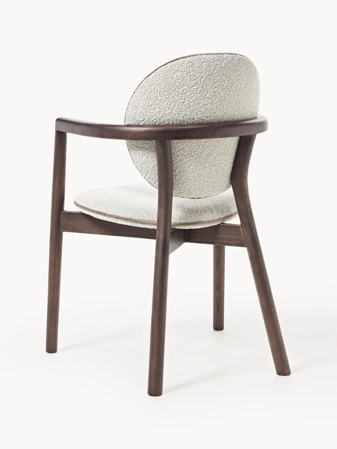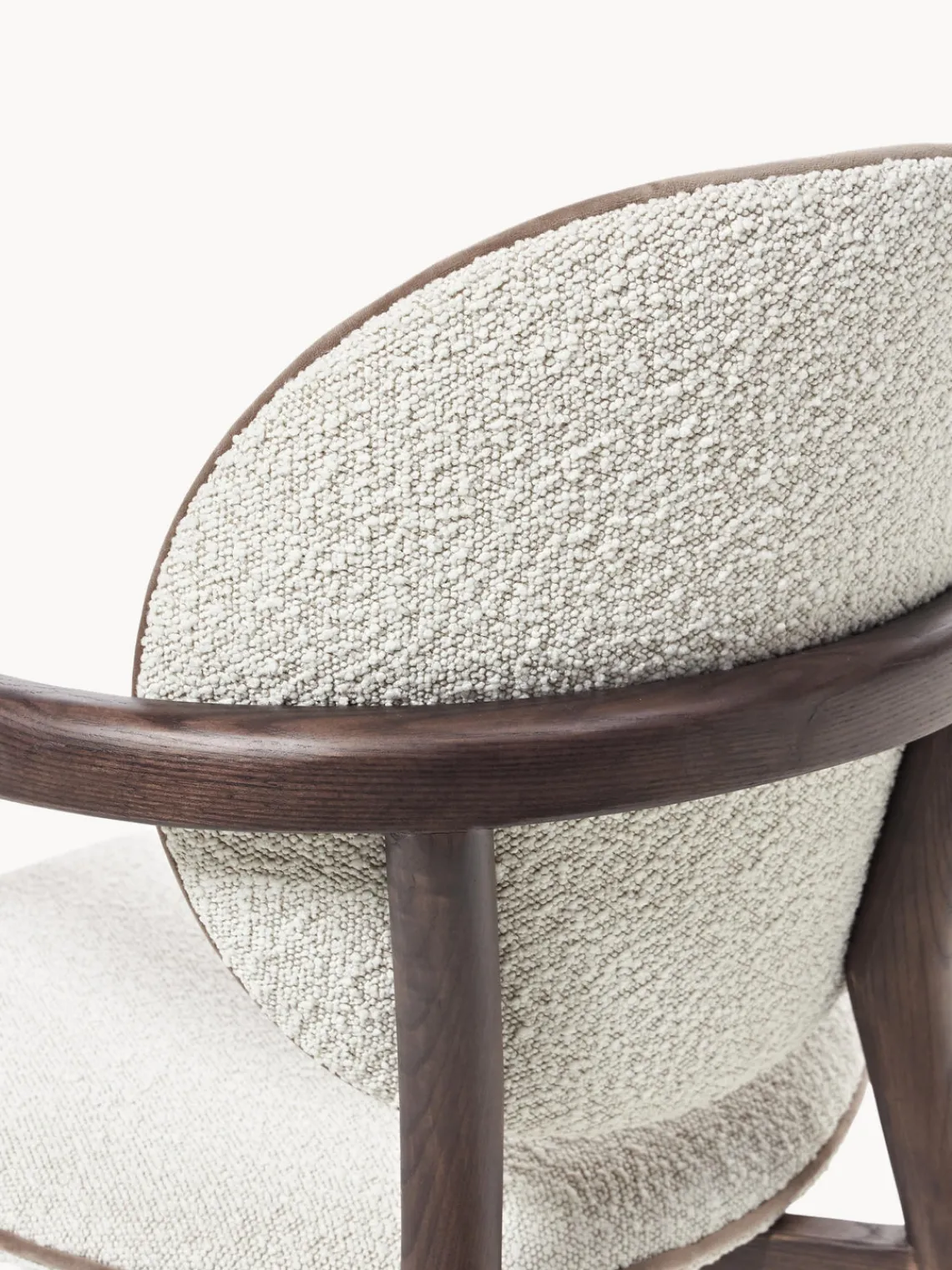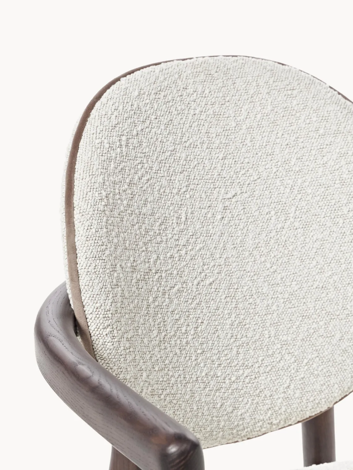 | Color | Bouclé blanco, madera de fresno oscura |