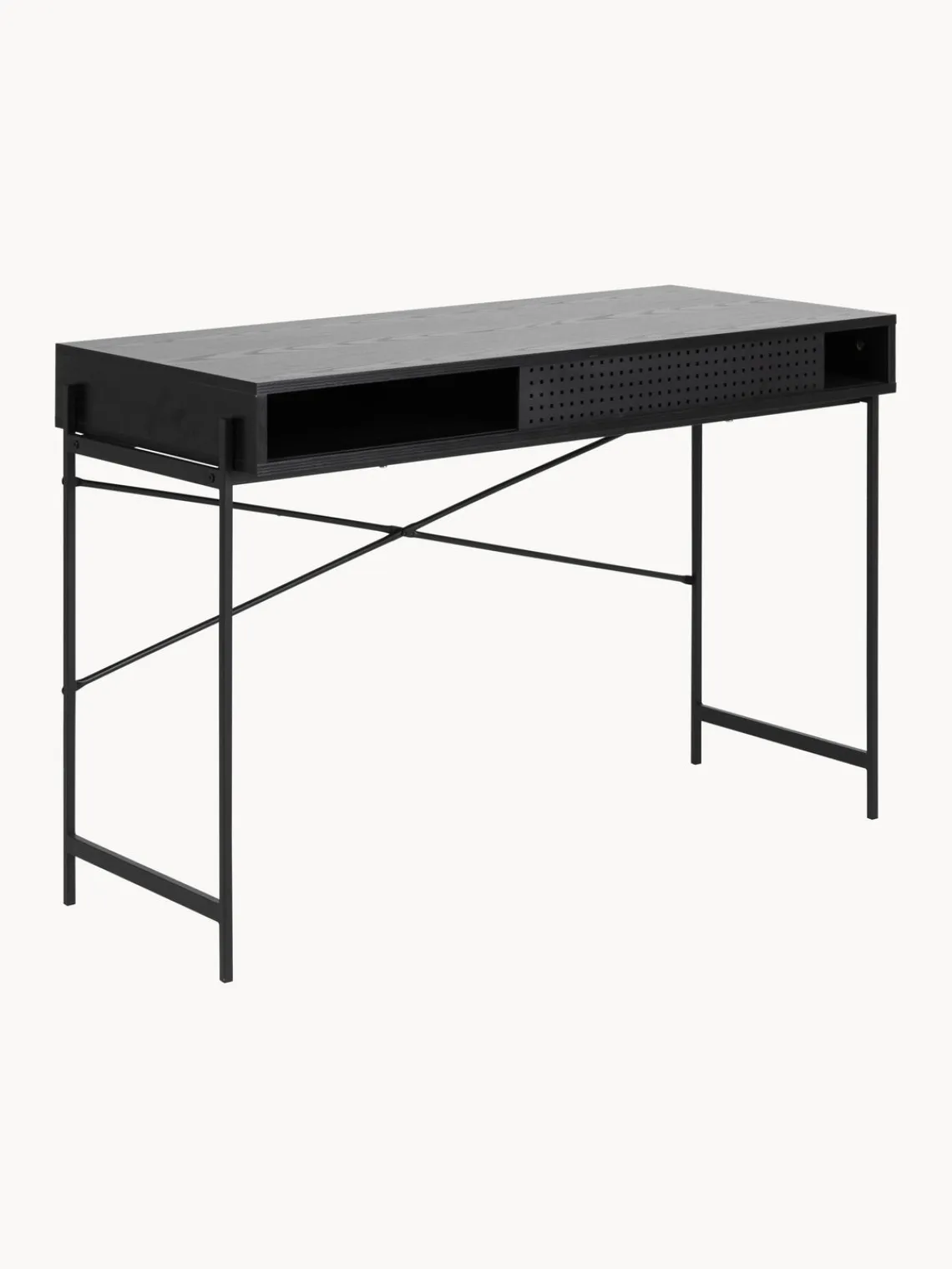 Dos pasacables en la parte posterior garantizan un lugar de trabajo libre de cables sueltos.