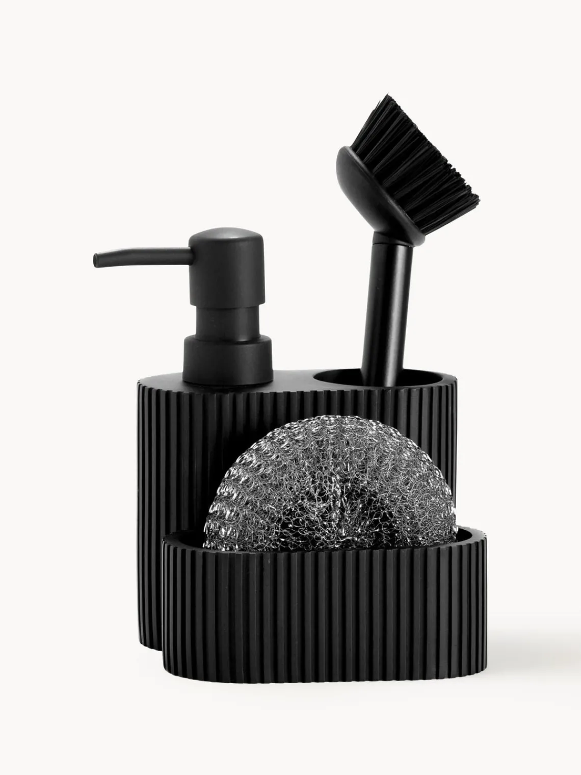 Escurreplatos|Almacenaje De Cocina>Andrea House Dispensador con cepillo Poly, 3 pzas. Negro mate