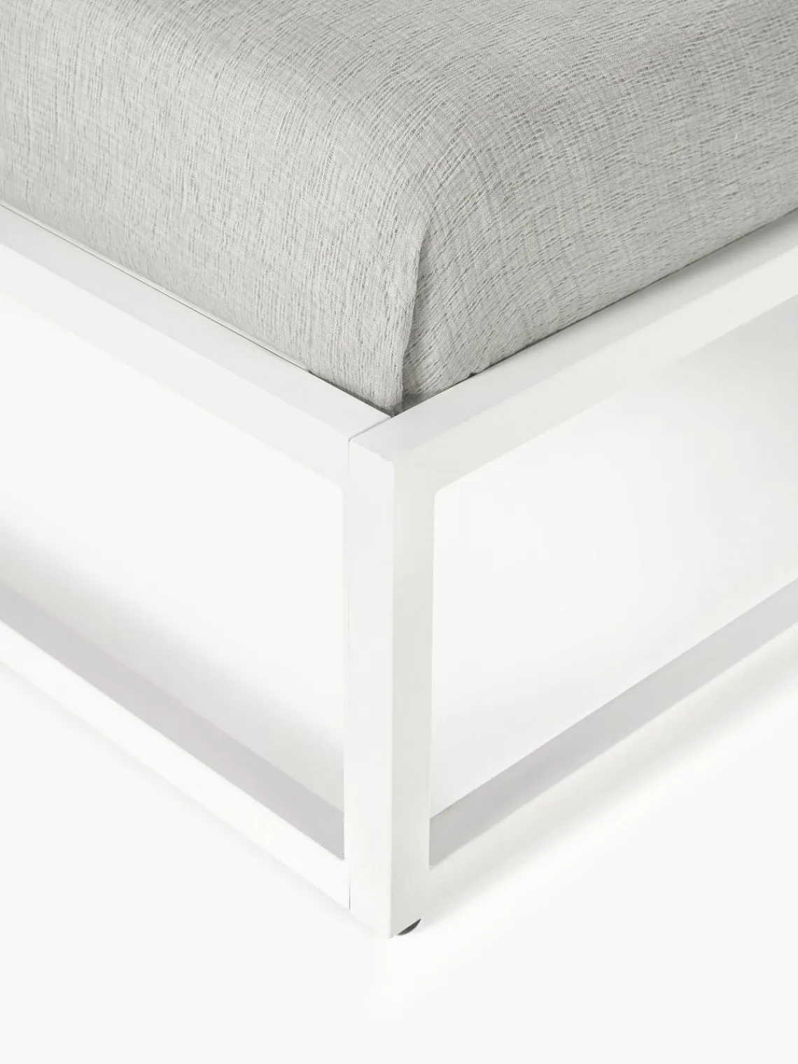 El diseño aireado de la cama se debe a la ausencia de marco. Por lo tanto, solo se recomienda un somier de láminas plano para no afectar el diseño.