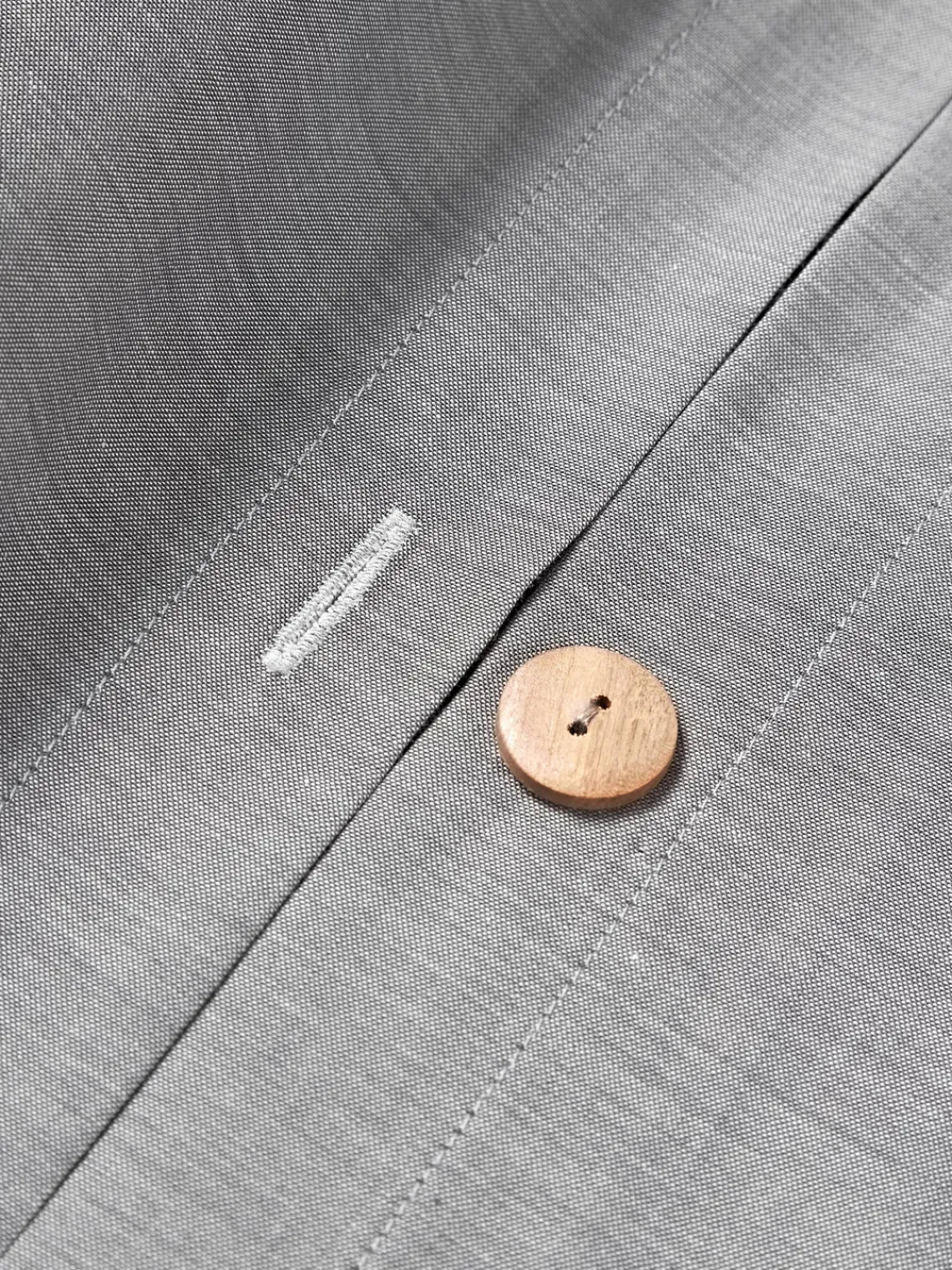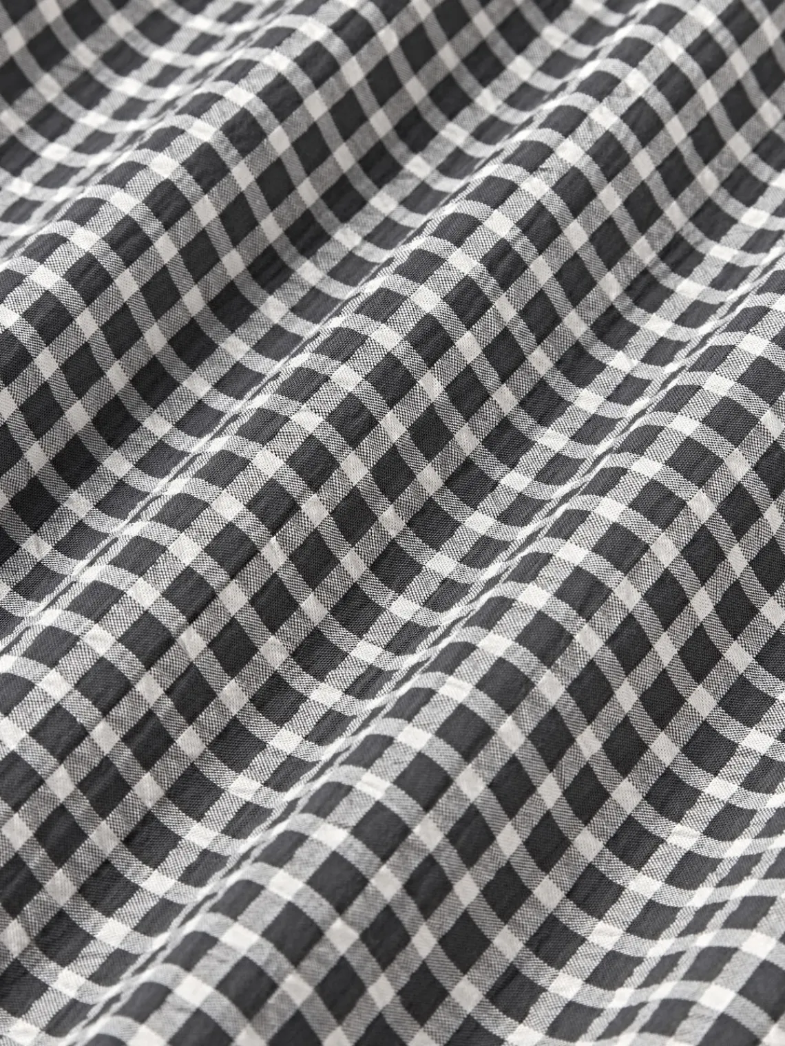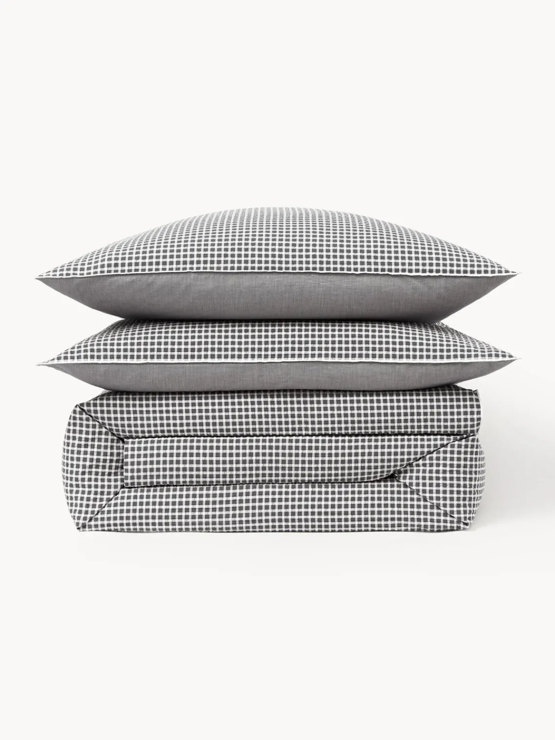 Funda nórdica de sirsaca con parte delantera a cuadros y parte trasera monocromática, tipo de cierre con botones. Hecho en Portugal.