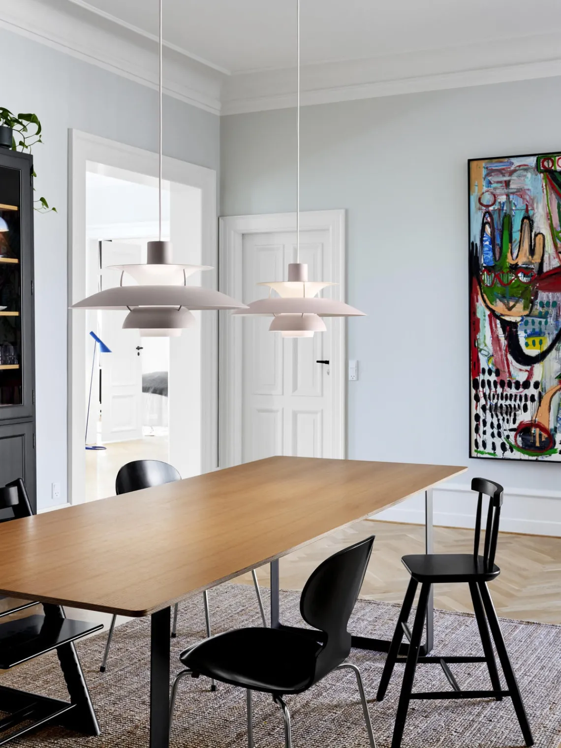 La lámpara de techo se puede regular individualmente en altura.