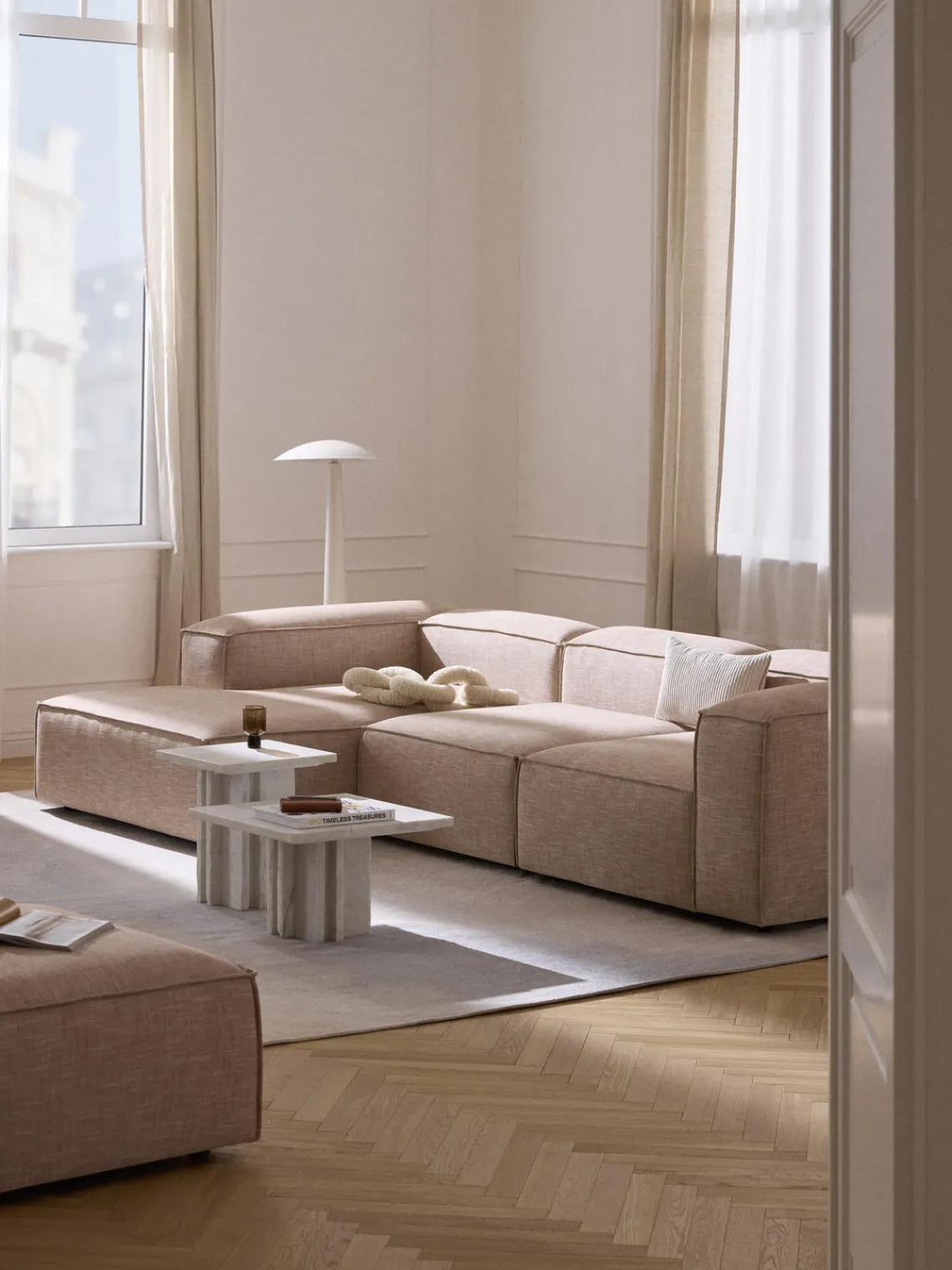 También puedes descubrir otros productos a juego en nuestra gama que se adaptan perfectamente a LENNON: la consola LANA no solo ofrece espacio de almacenamiento adicional, sino que también es un elemento decorativo que se adapta exactamente a las dimensiones de LENNON. El taburete LENNON con bandeja de madera se puede utilizar de forma flexible como mesa de centro o como elemento intermedio en el sofá, para conseguir un aspecto elegante y espacio de almacenamiento práctico. No te olvides del complemento perfecto: cojines de sofá en todos los tejidos y colores de LENNON para un look perfecto, ya sea uniforme o en un estilo mix & match.