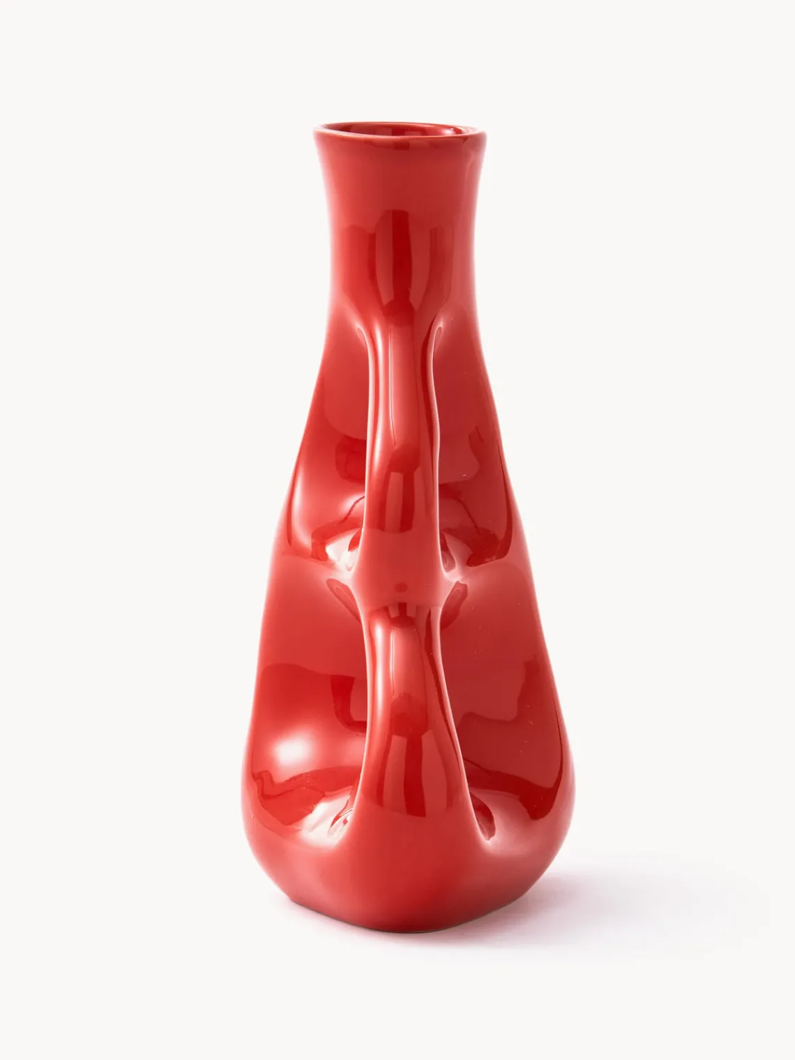 Jarrones|Decoración>POLSPOTTEN Jarrón de cerámica artesanal Three Ears, Al 21 cm Rojo coral