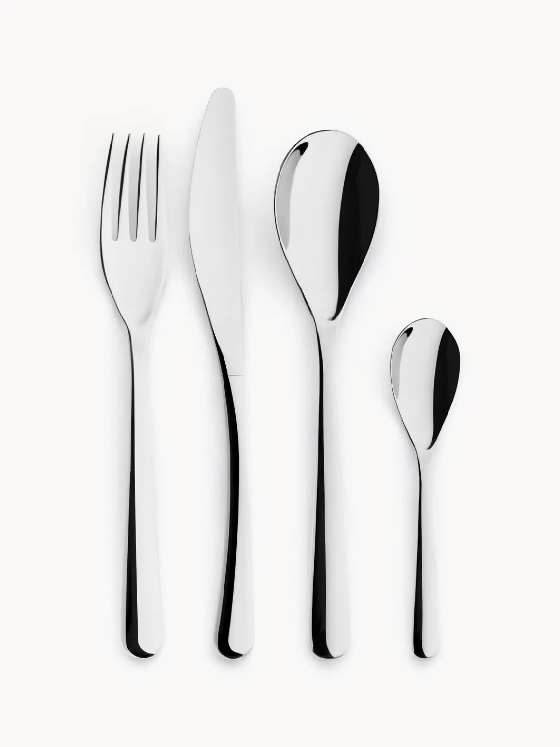 Cubertería de 16 piezas consta de cuatro tenedores, cuatro cuchillos, cuatro cucharas y cuatro cucharillas.