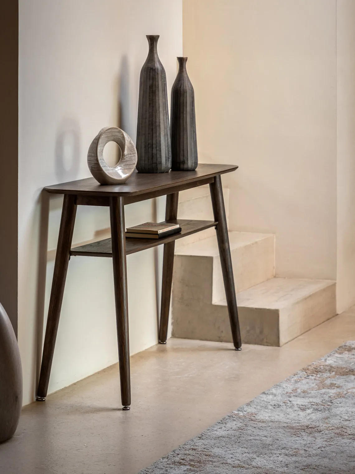 Mesas Consola|Consolas> Consola de recibidor semicircular de vidrio con acabado envejecido Goddess