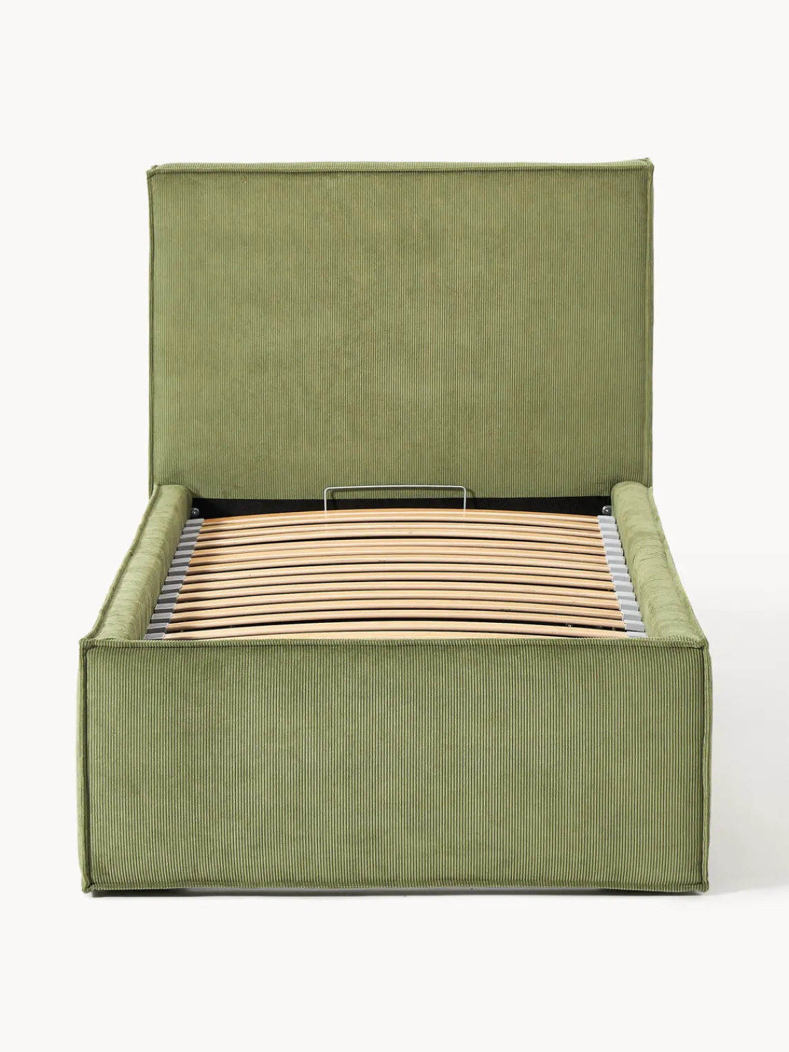Cama tapizada con espacio de almacenamiento.