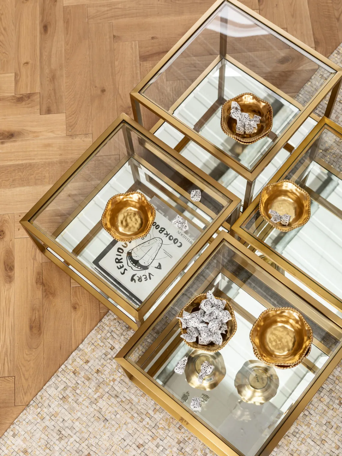 Mesa 1, 2: cada una de ancho 50 cm, alto 43 cm, fondo 50 cm