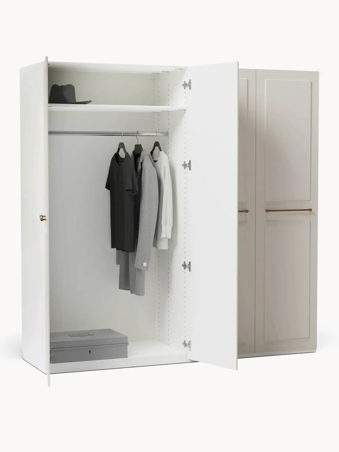– Armario modular que consta de 2 módulos con diseño interior Basic que incluye 2 barras para colgar ropa y 2 estantes