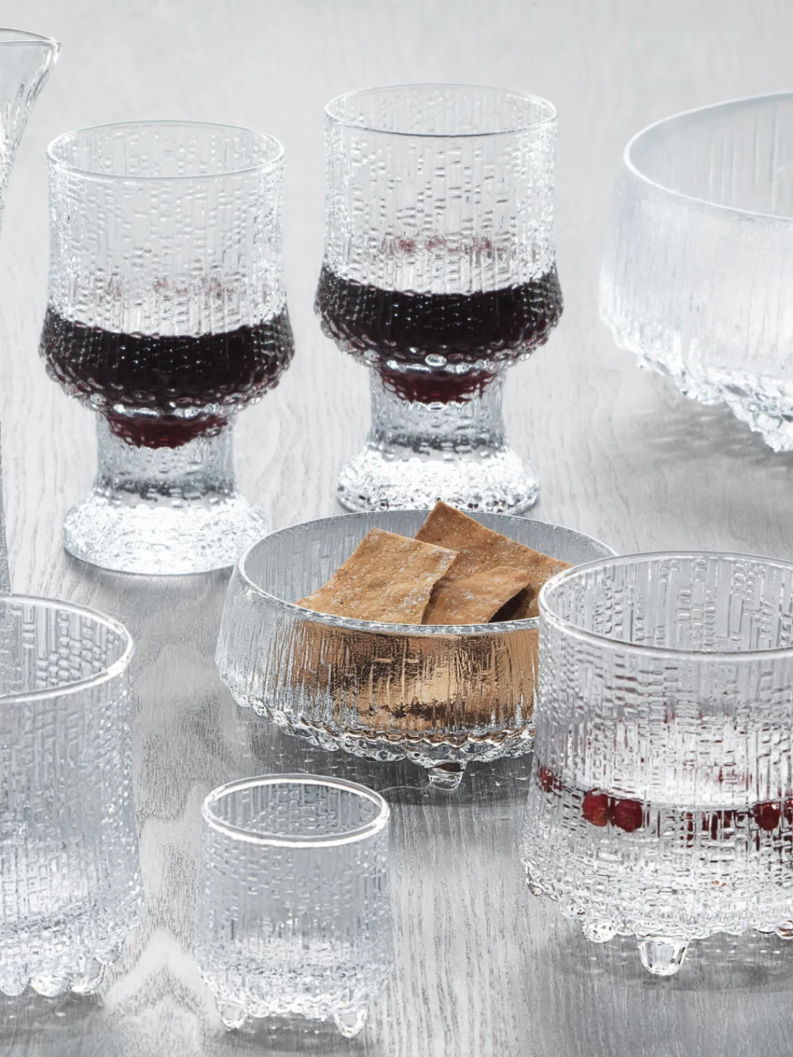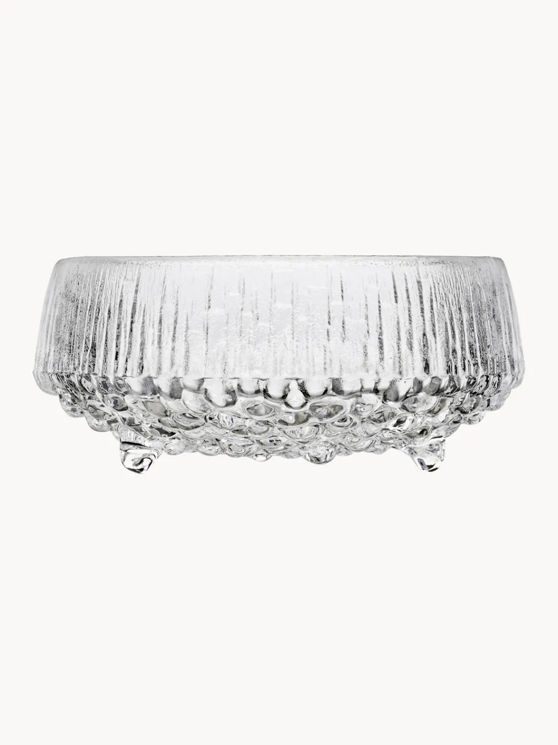 Ultima Thule, de Tapio Wirkkala, es una obra maestra atemporal del diseño finlandés en vidrio. Captura la belleza y la naturaleza virgen de los paisajes nórdicos. Ultima Thule se inspira en los interminables paisajes invernales del norte. La textura única de su superficie recuerda al hielo derritiéndose bajo el sol primaveral.