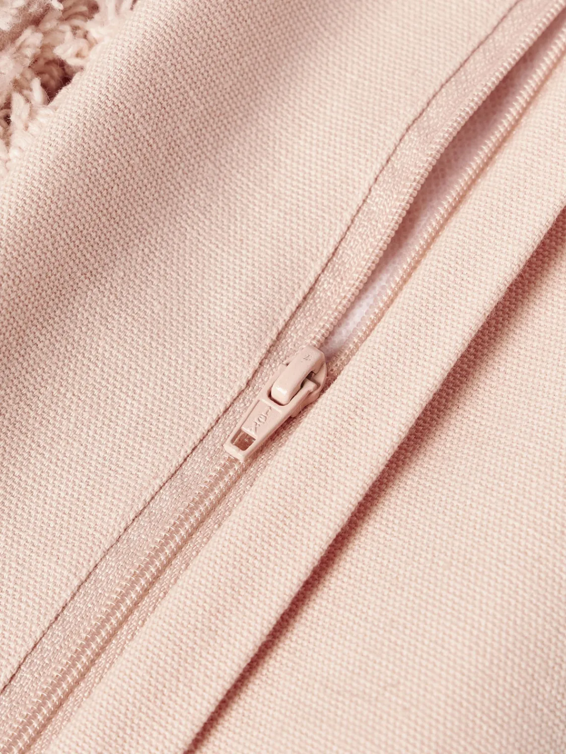 La funda de cojín con adorno decorativo con mechones se entrega sin relleno, tipo de cierre con cremallera.