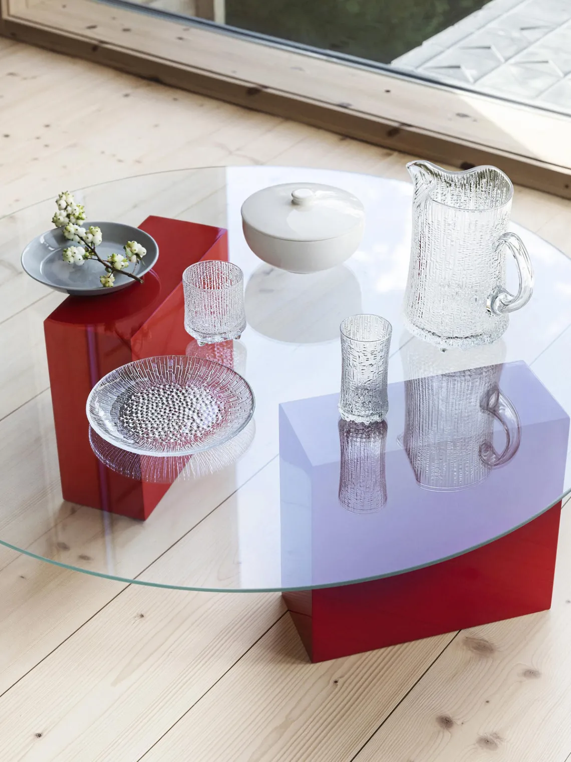 Ultima Thule, de Tapio Wirkkala, es una obra maestra atemporal del diseño finlandés en vidrio. Captura la belleza y la naturaleza virgen de los paisajes nórdicos. Ultima Thule se inspira en los interminables paisajes invernales del norte. La textura única de su superficie recuerda al hielo derritiéndose bajo el sol primaveral.