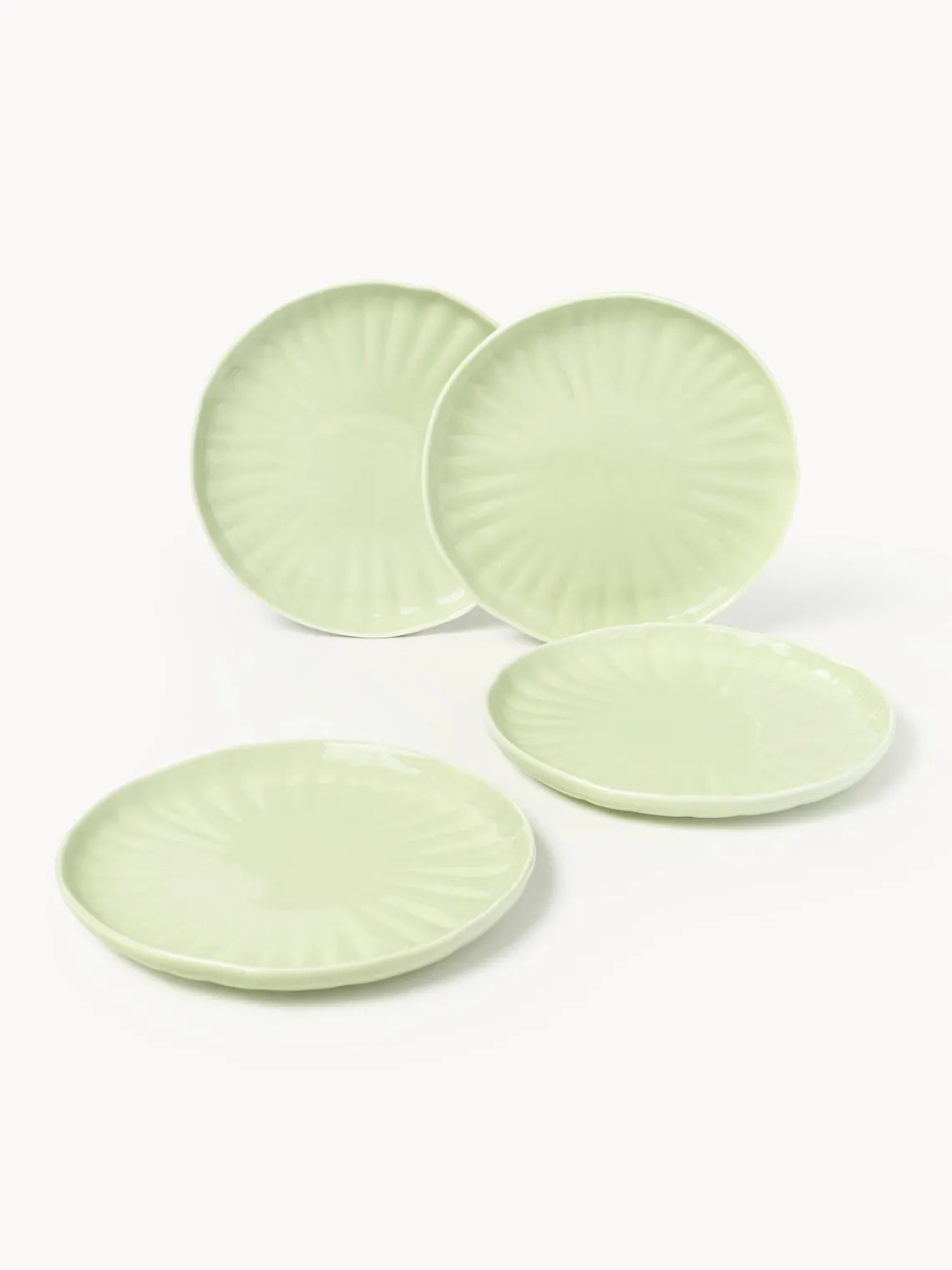 Platos Llanos|Vajillas Completas>Westwing Collection Platos llanos de porcelana con relieves Sali, 4 uds. Verde claro