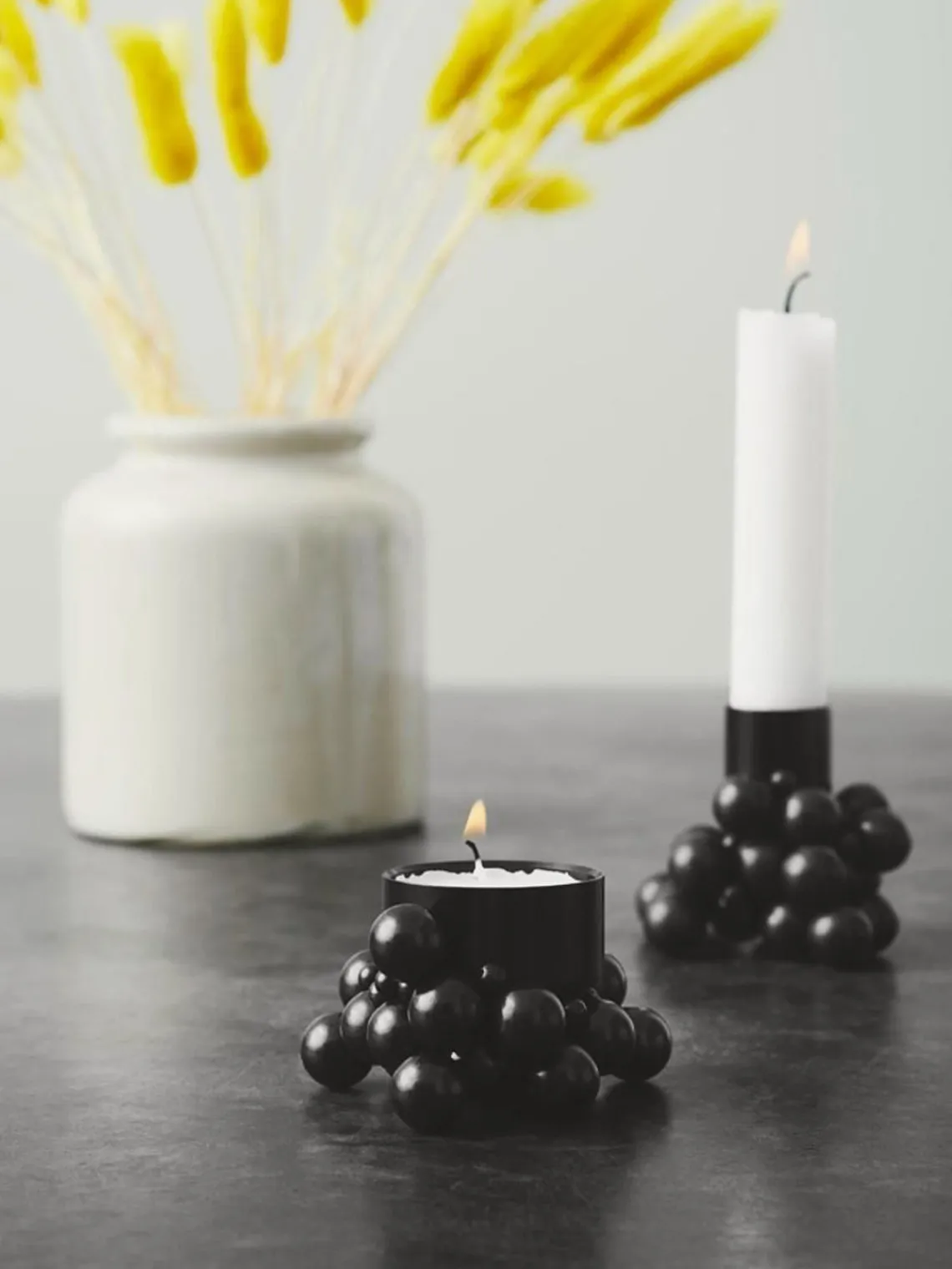 Usar las esfereas grandes para construir una base y luego decórala con las esferas más pequeñas. Si deseas construir configuraciones más grandes, necesitarás al menos un producto más de la colección Molekyl.