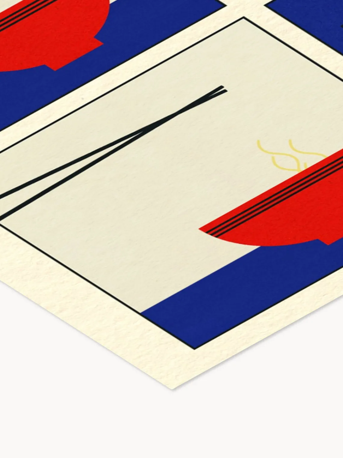 Mejora tu espacio con este vibrante póster de sopa ramen, que presenta una llamativa combinación de azul, rojo y blanco, perfecto para cocinas o salones.