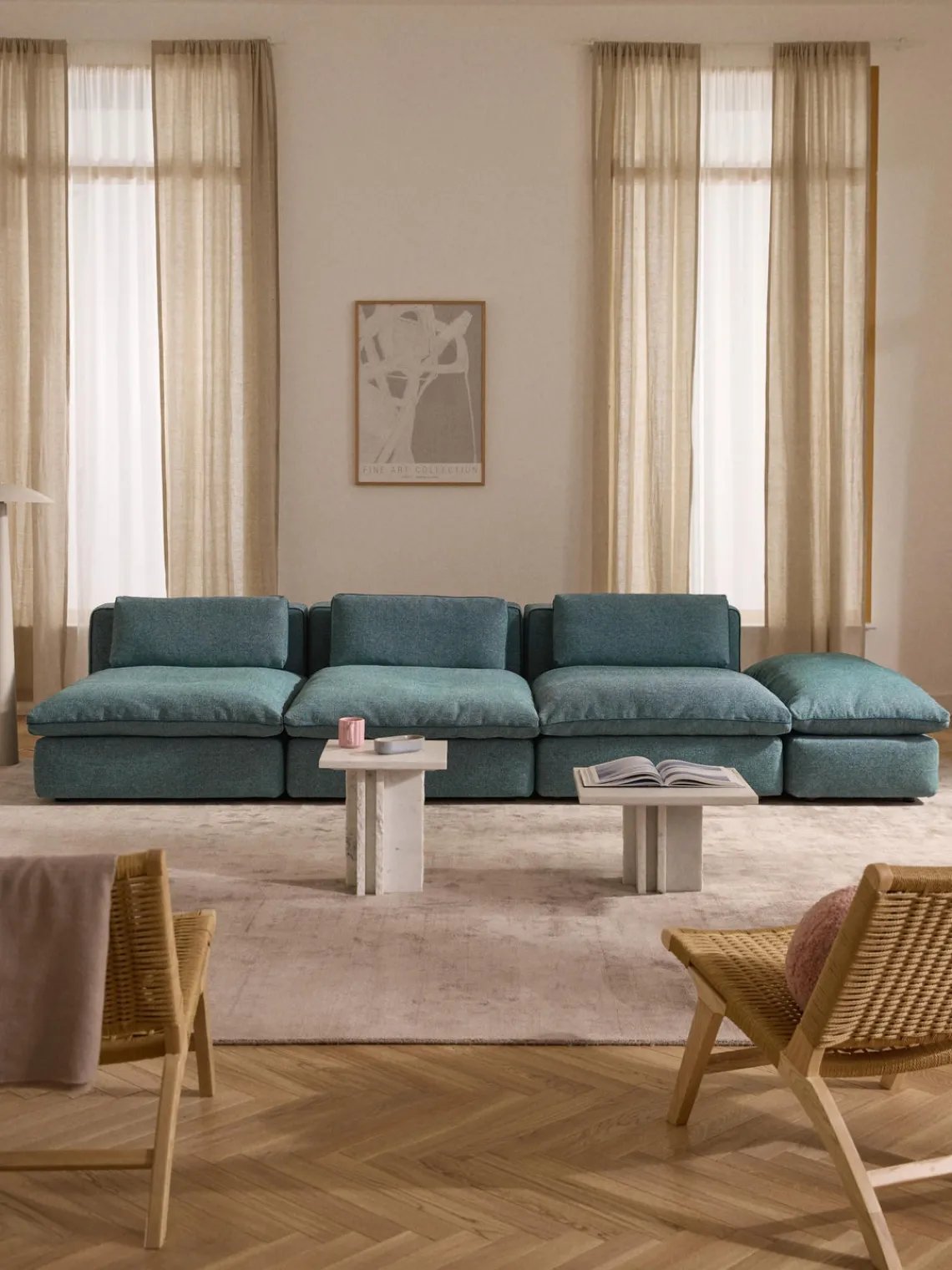 Reposapiés|Sofás>Westwing Collection Puf reposapiés grande Felix Tejido grueso verde turquesa