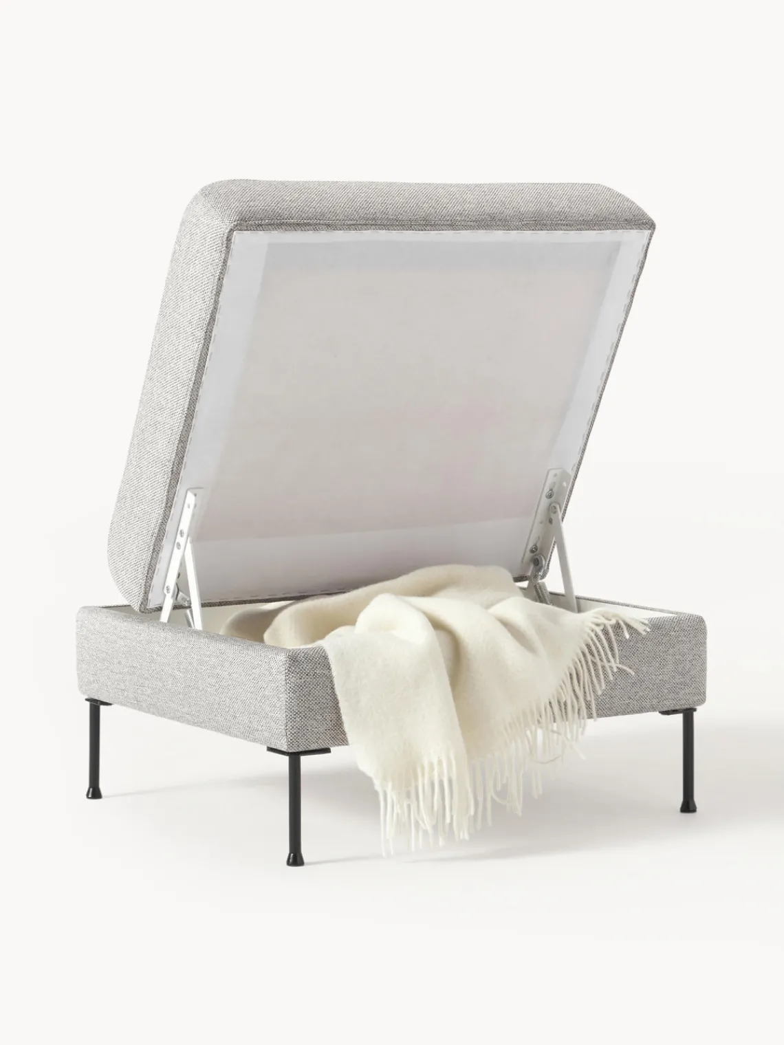 El puf reposapiés dispone de espacio de almacenamiento adicional debajo del asiento y, por lo tanto, es versátil.