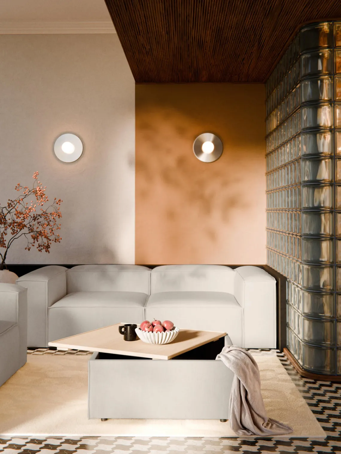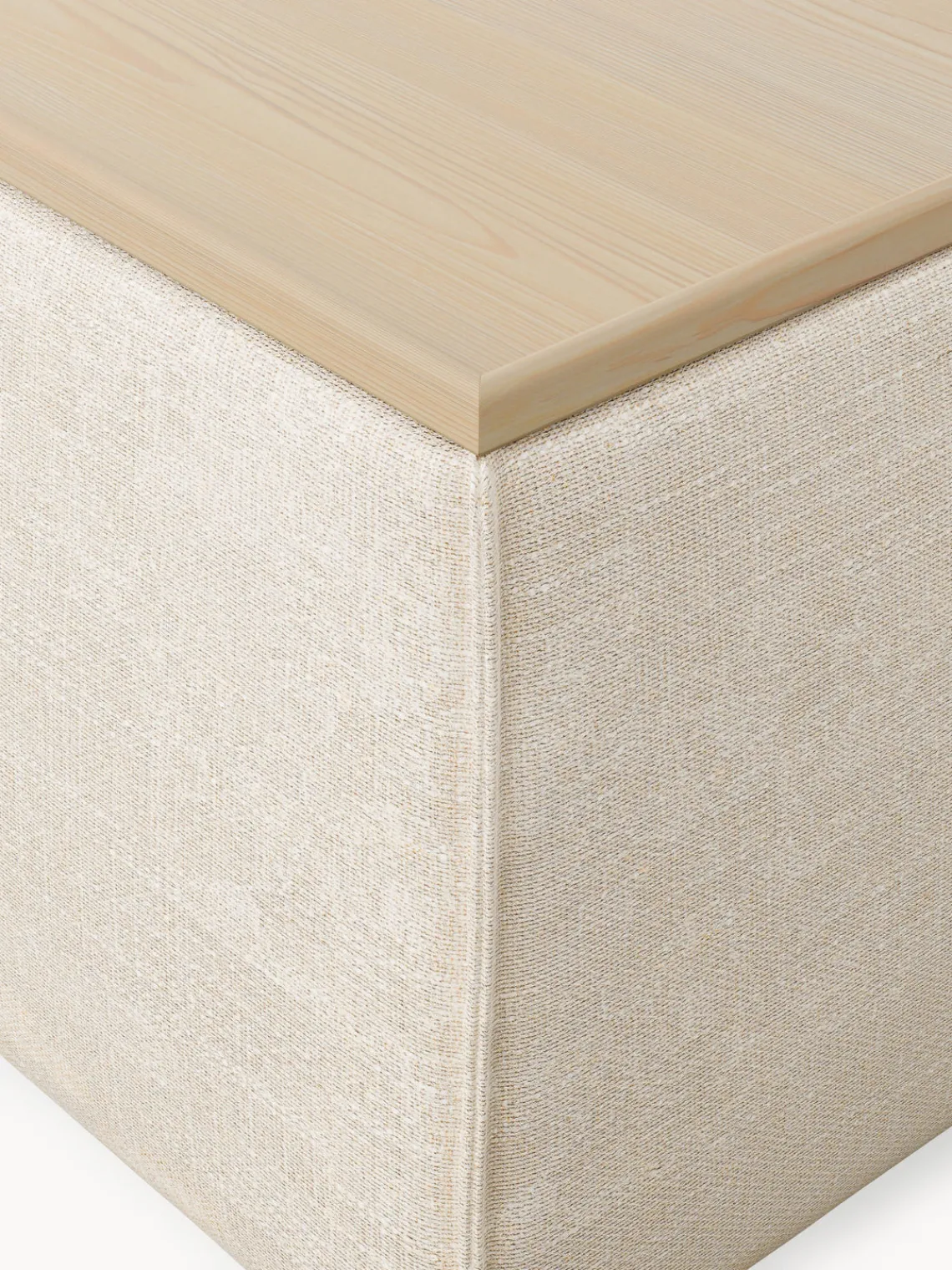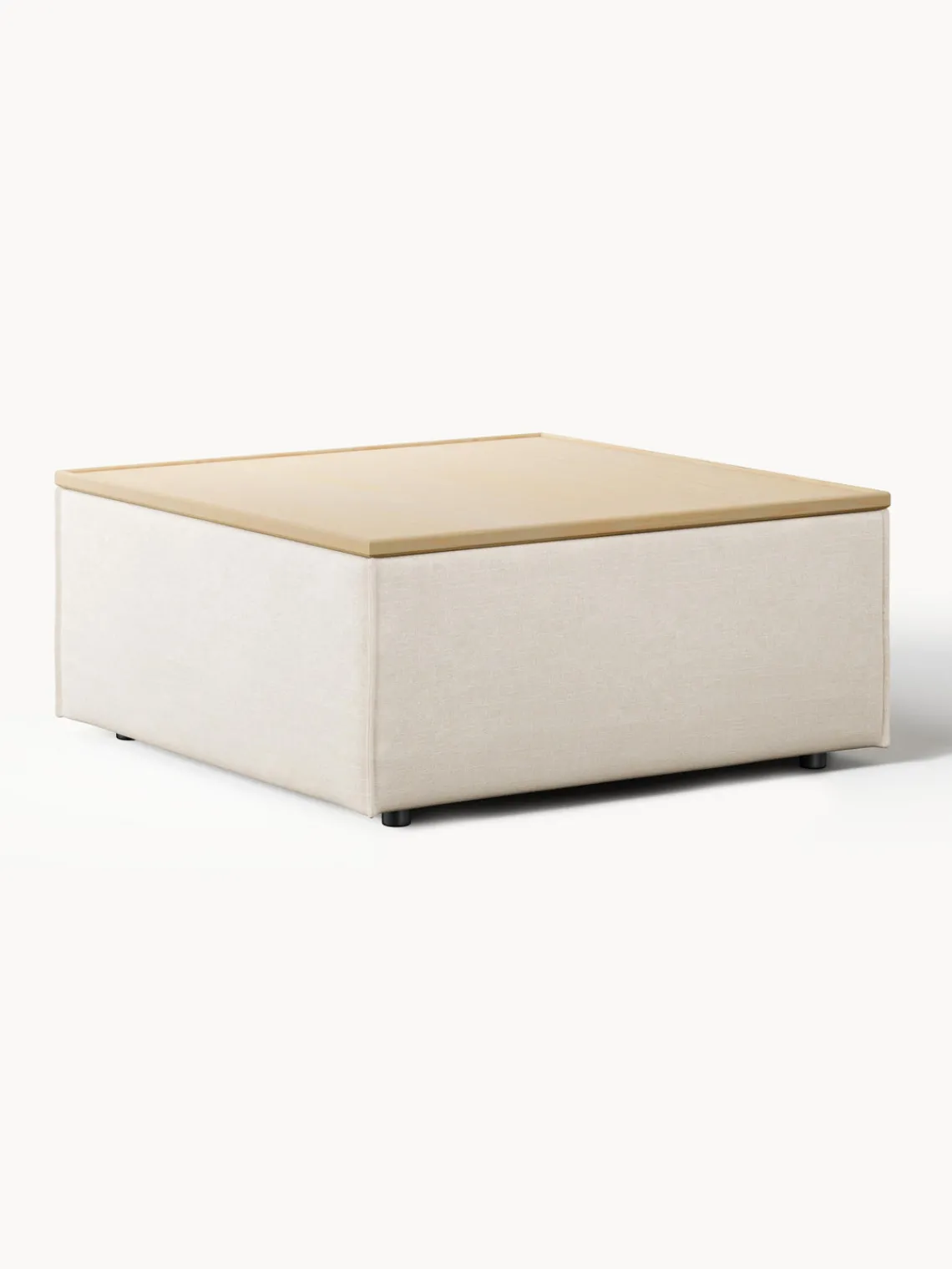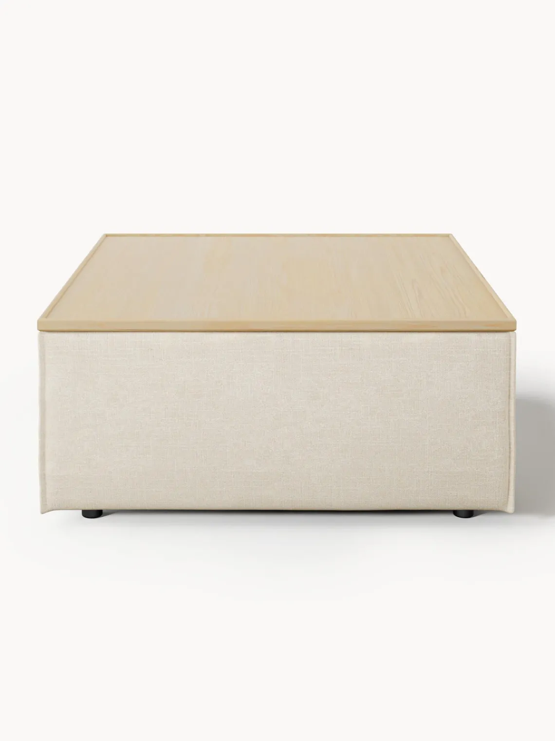 Reposapiés|Sofás>Westwing Collection Reposapiés puf de mezcla de lino con espacio de almacenamiento Lennon Mezcla de lino beige, madera de roble clara