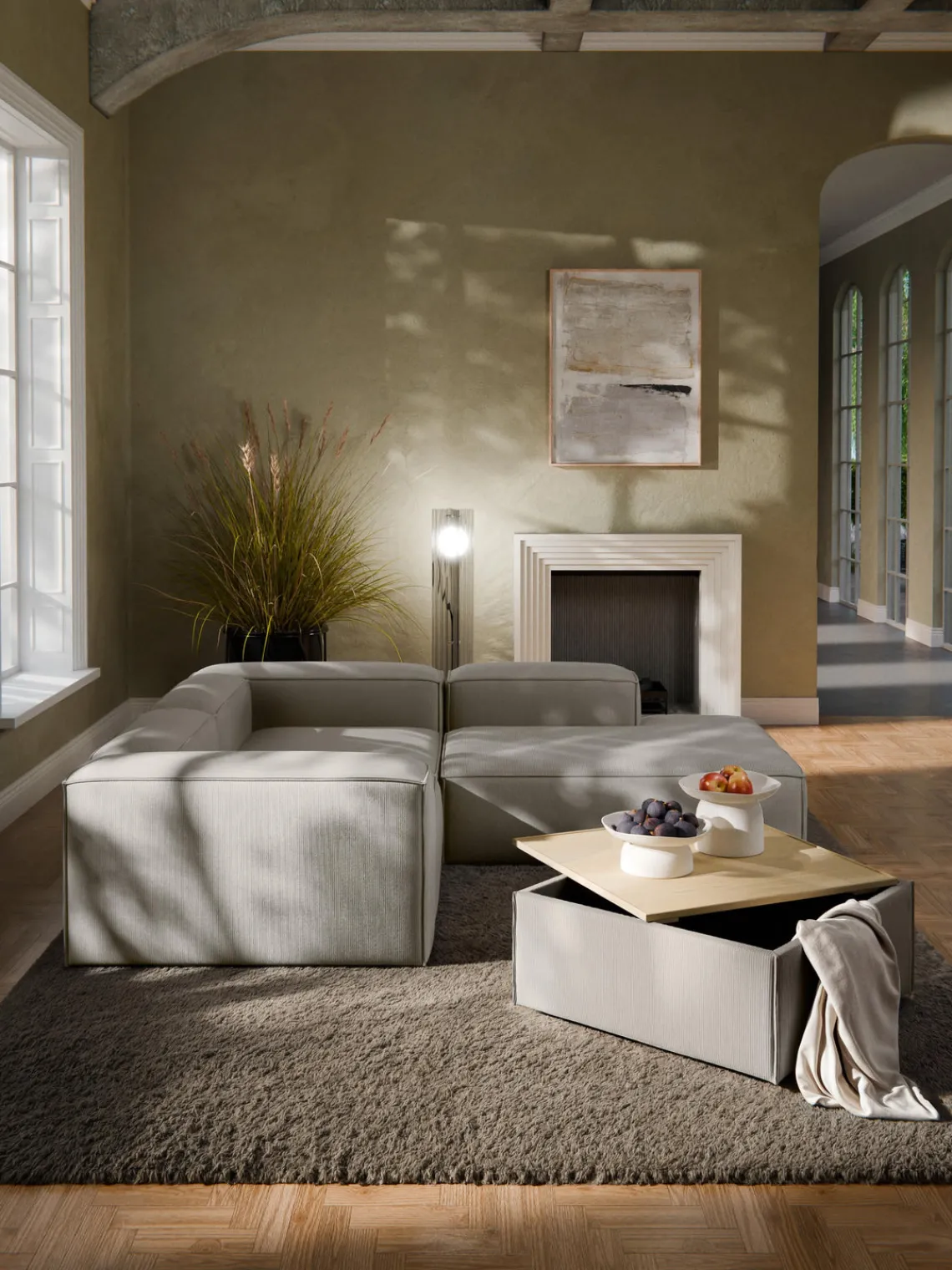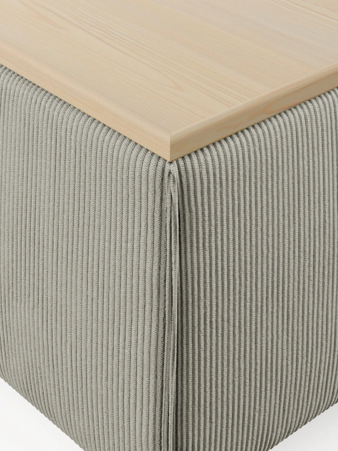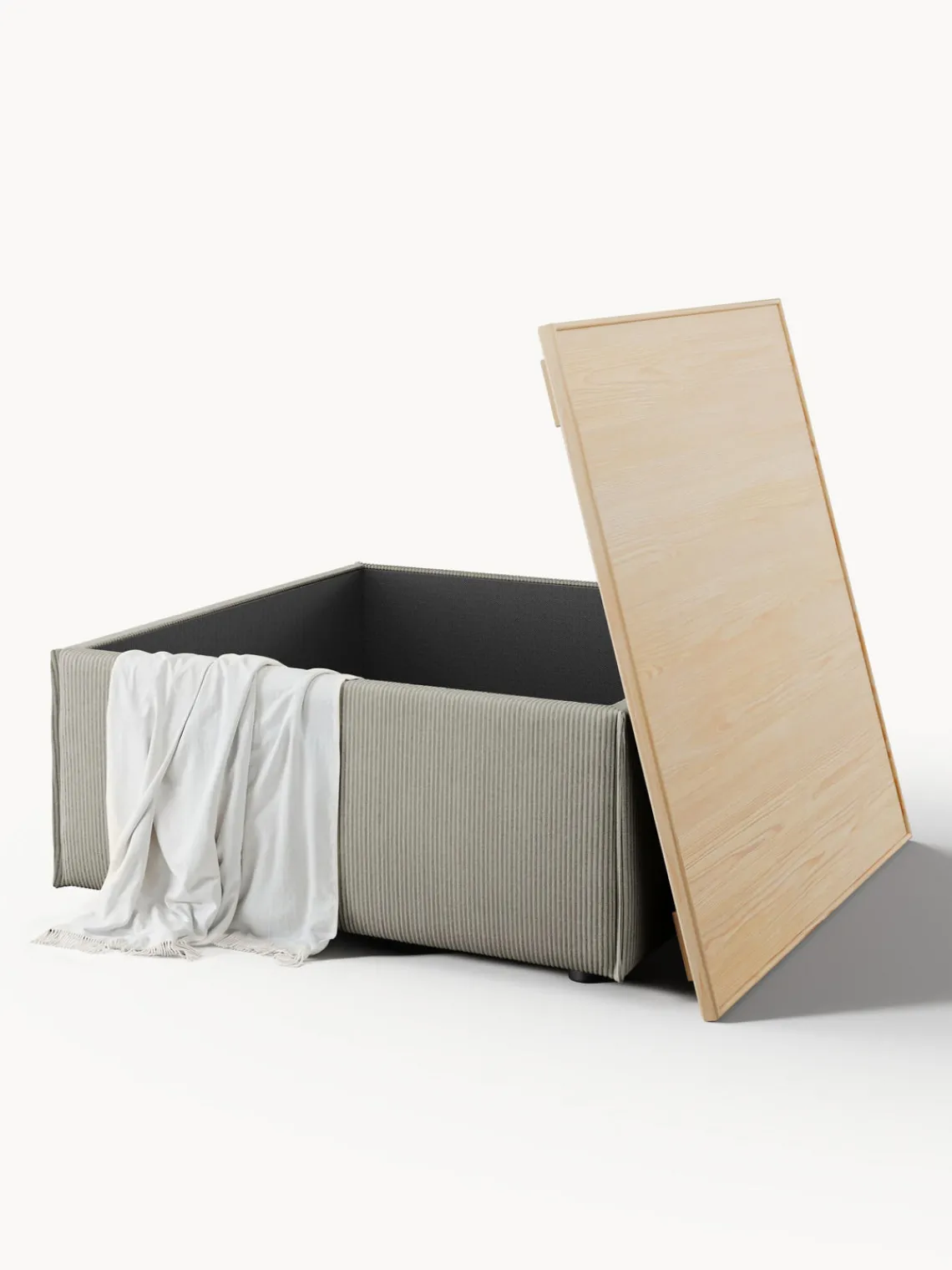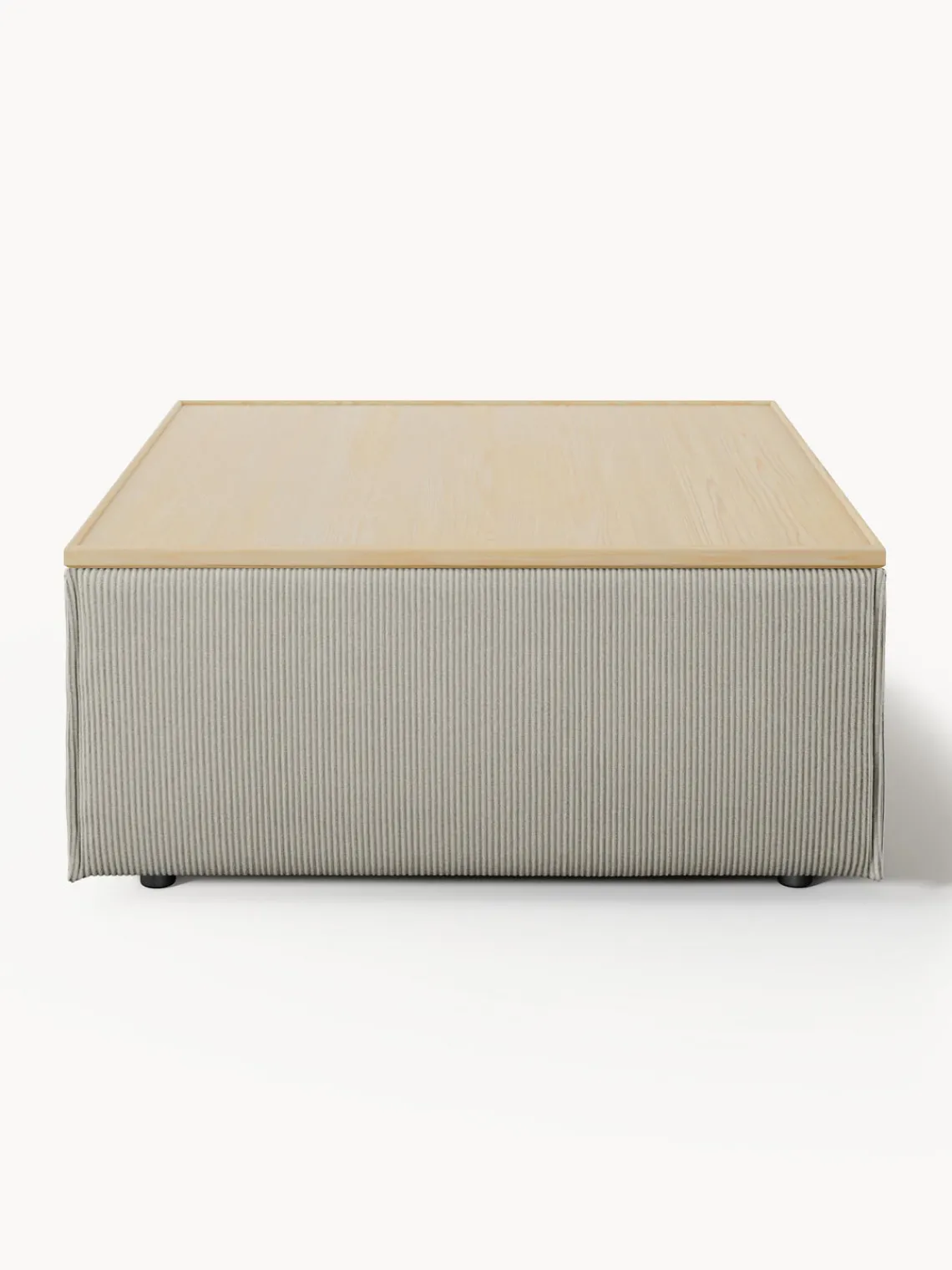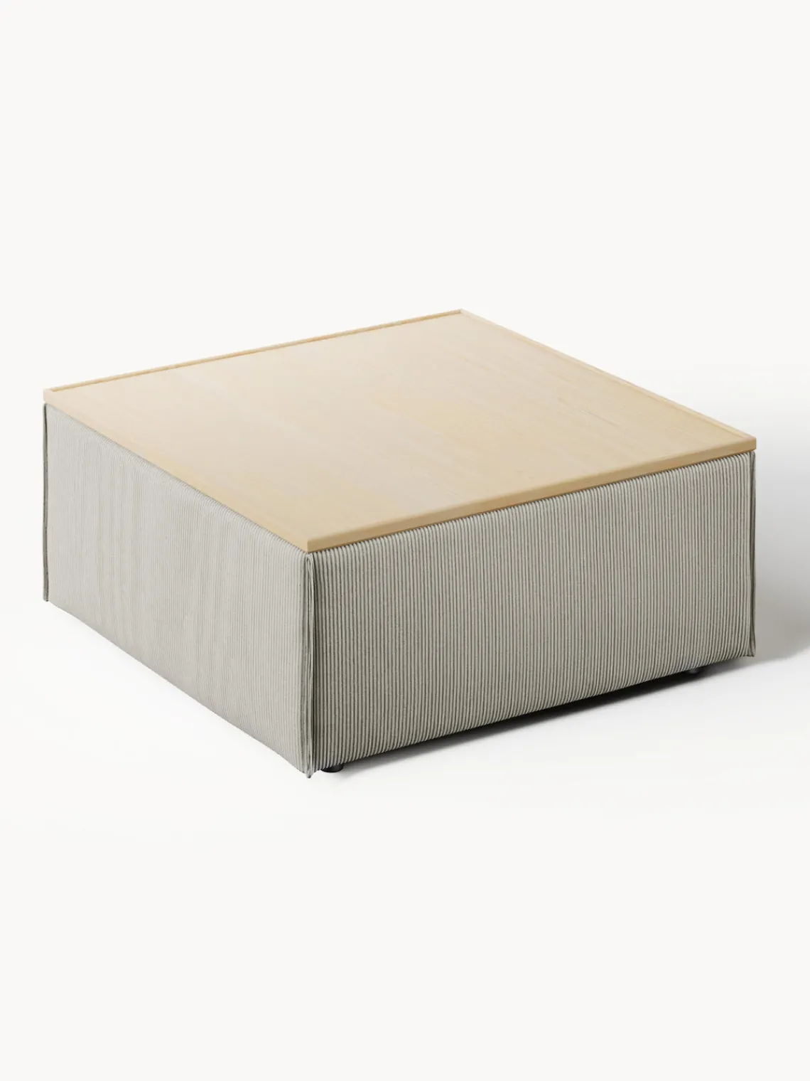 Reposapiés|Sofás>Westwing Collection Reposapiés puf de pana con espacio de almacenamiento Lennon Pana gris, madera de roble clara
