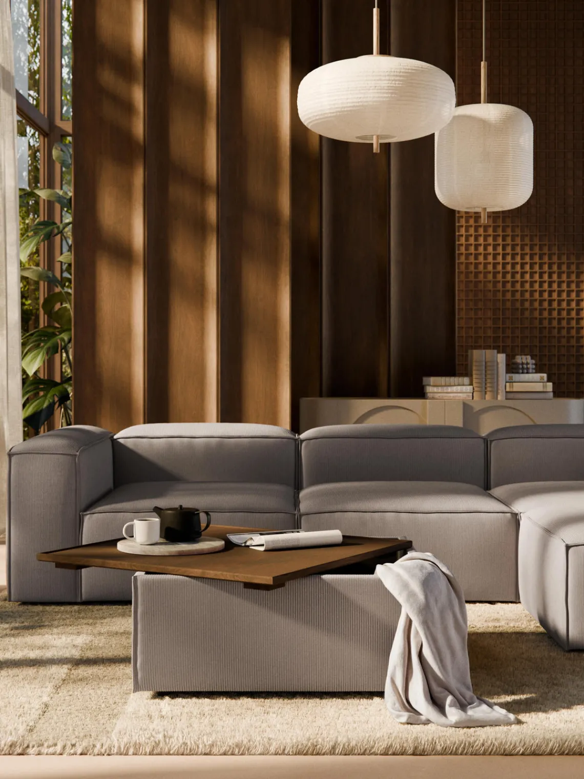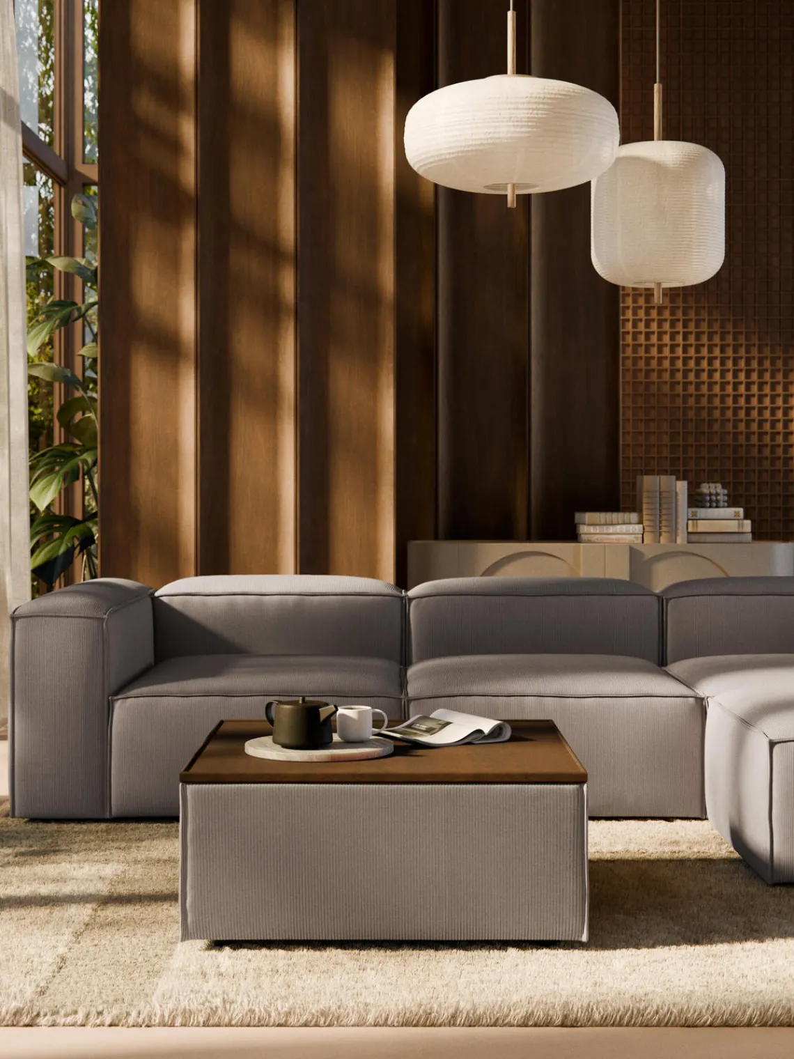 Reposapiés|Sofás>Westwing Collection Reposapiés puf de pana con espacio de almacenamiento Lennon