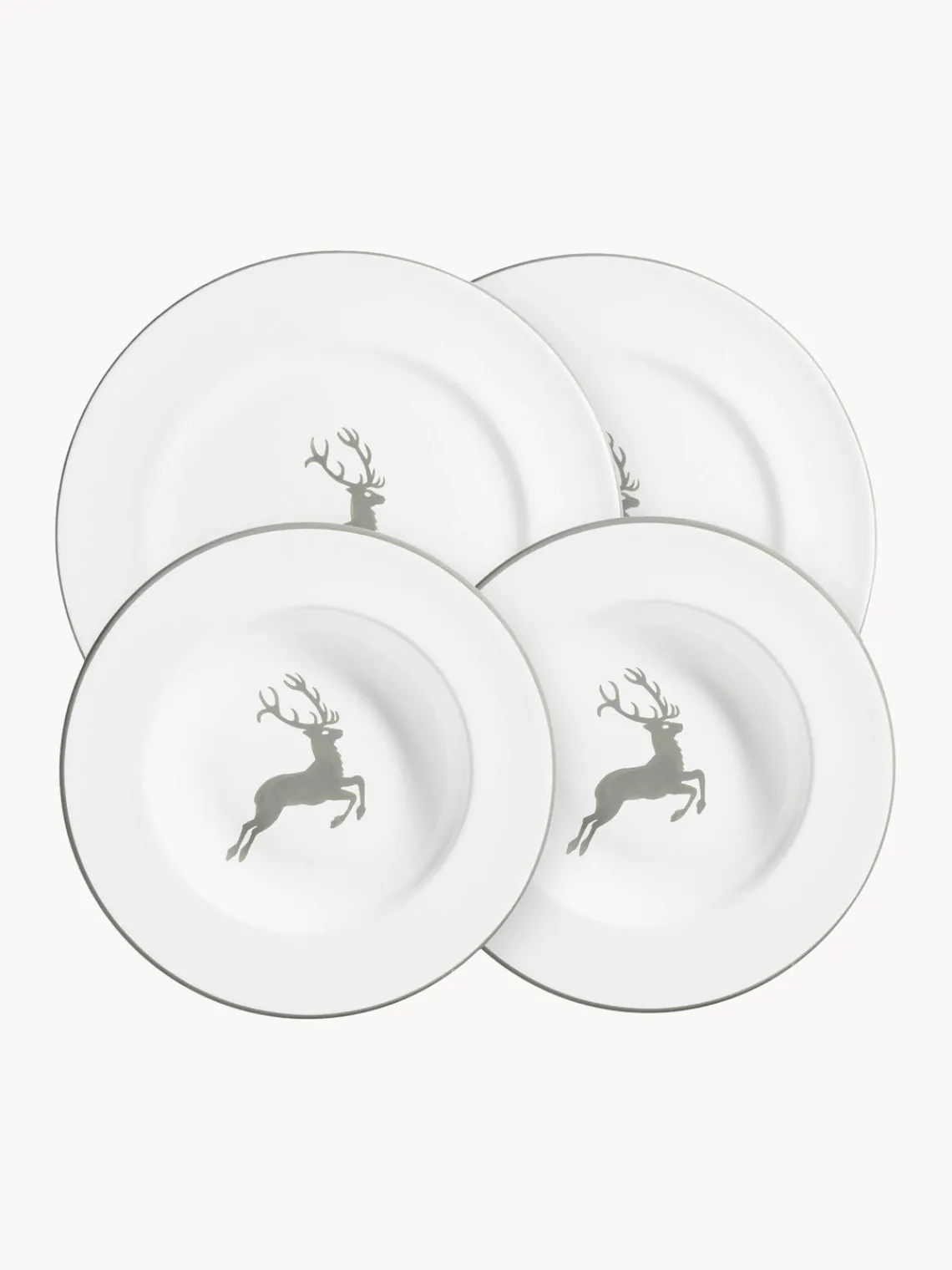 Vajilla de 4 piezas que consta de dos platos llanos y dos platos hondos.