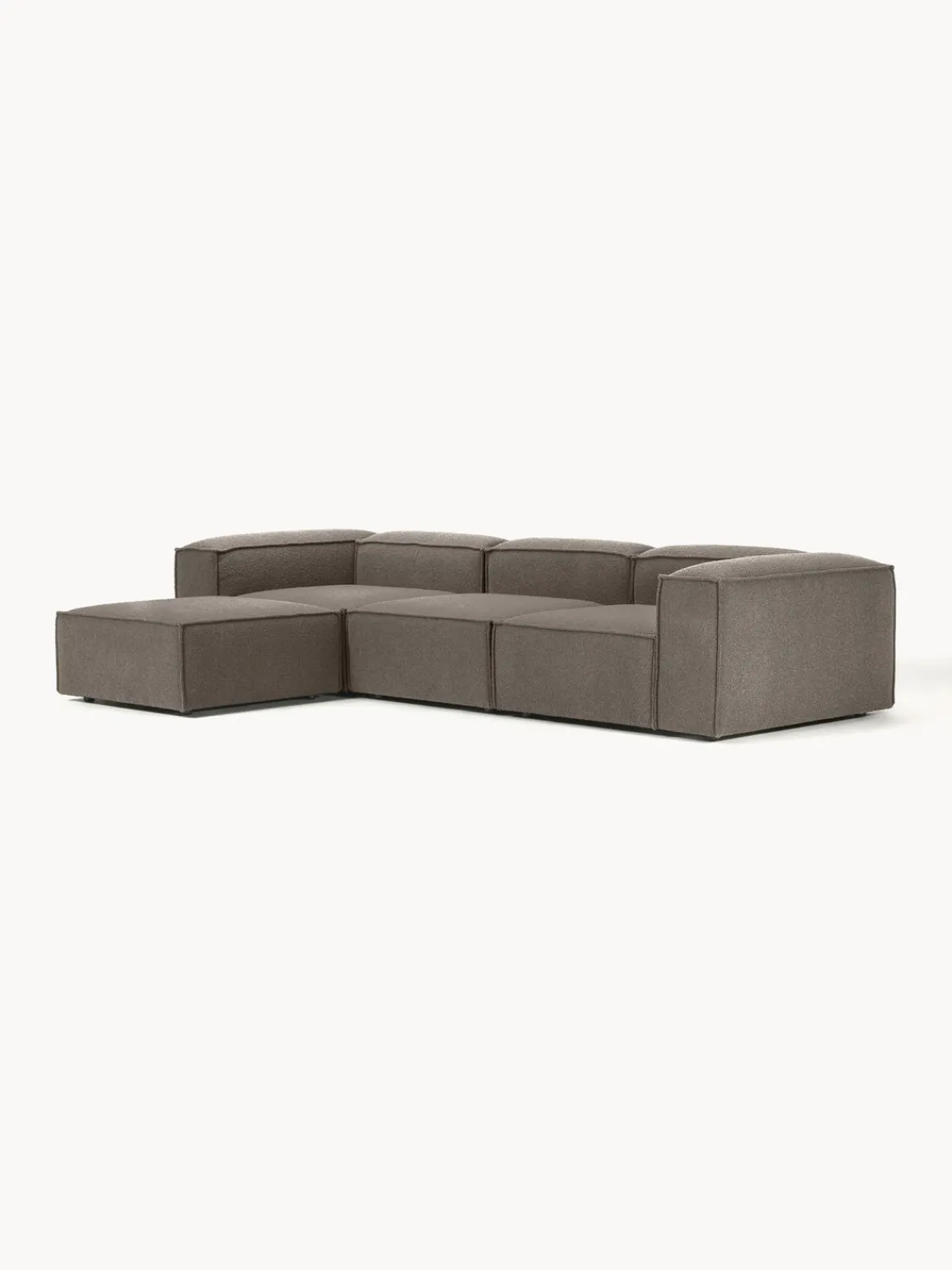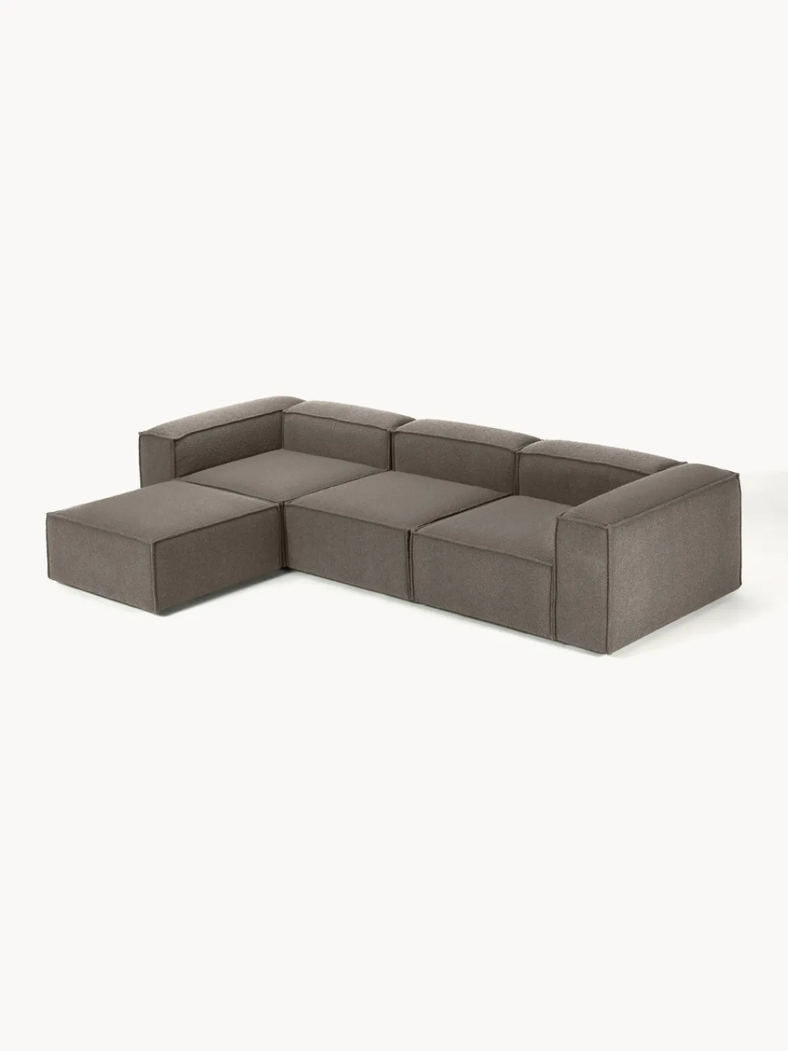 Los cuatro módulos se pueden combinar a tu gusto para crear tu sofá. Se entrega en cuatro partes, que se pueden juntar individualmente mediante enganches en la parte inferior de los módulos.