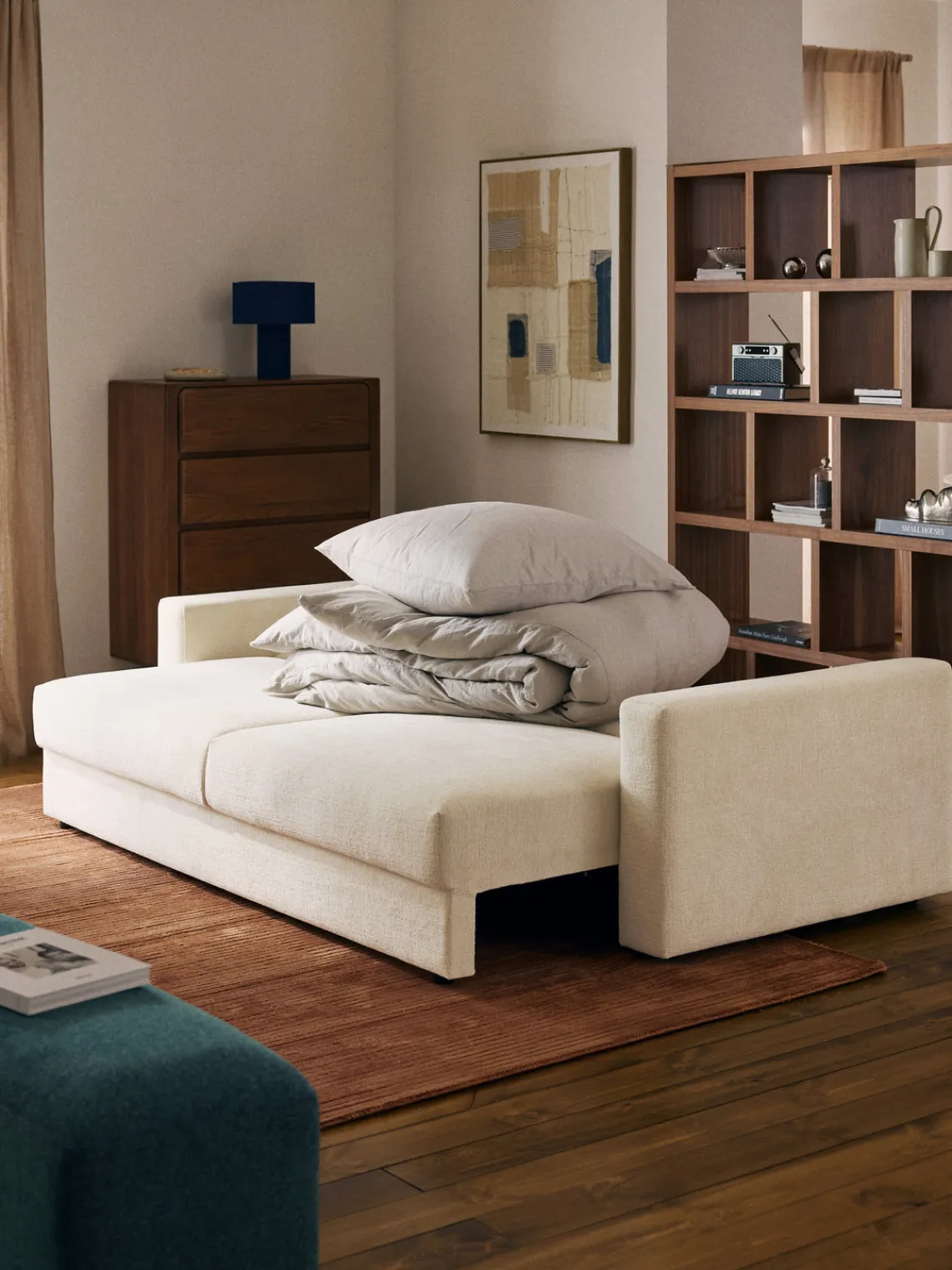 Sofás Cama|Sofás>Westwing Collection Sofá cama de terciopelo Tasha (3 plazas), con espacio de almacenamiento Tejido beige