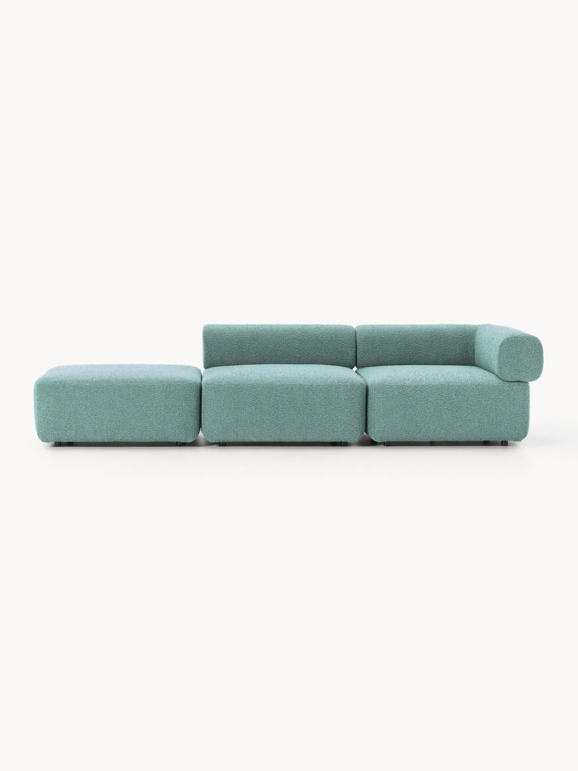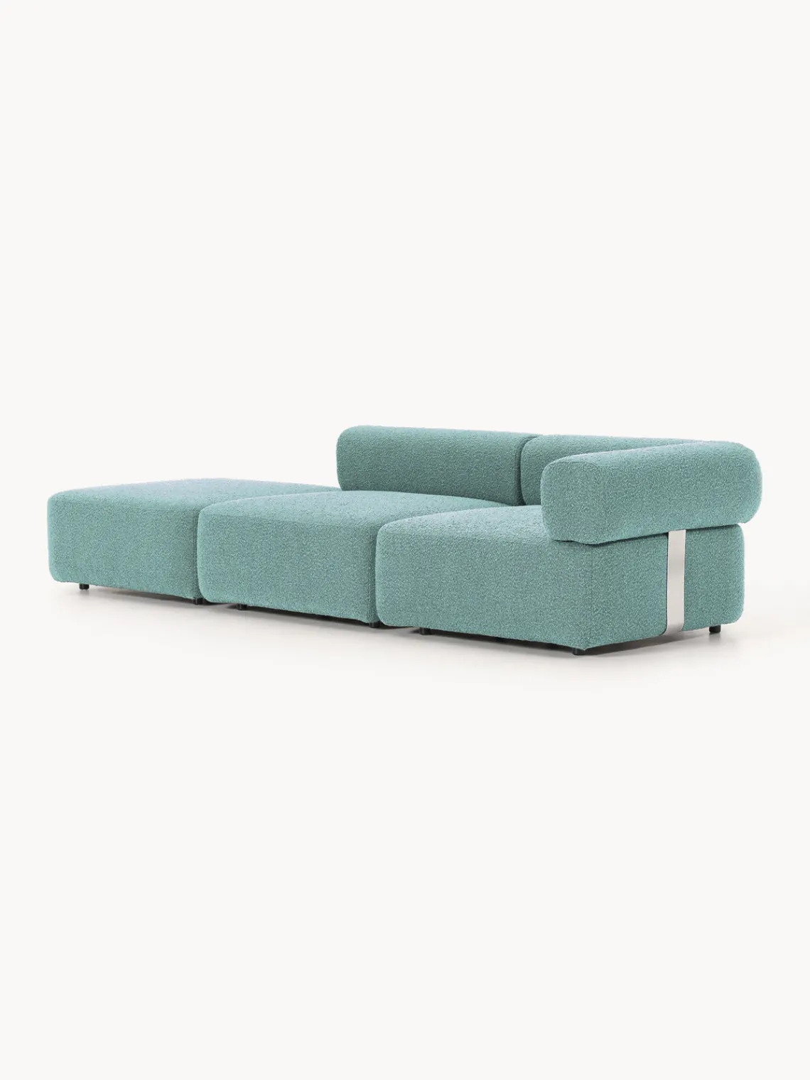 Los cuatro módulos pueden combinarse de diversas formas. El sofá se entrega en cuatro partes que pueden conectarse individualmente mediante cierres situados en la parte inferior de los módulos.