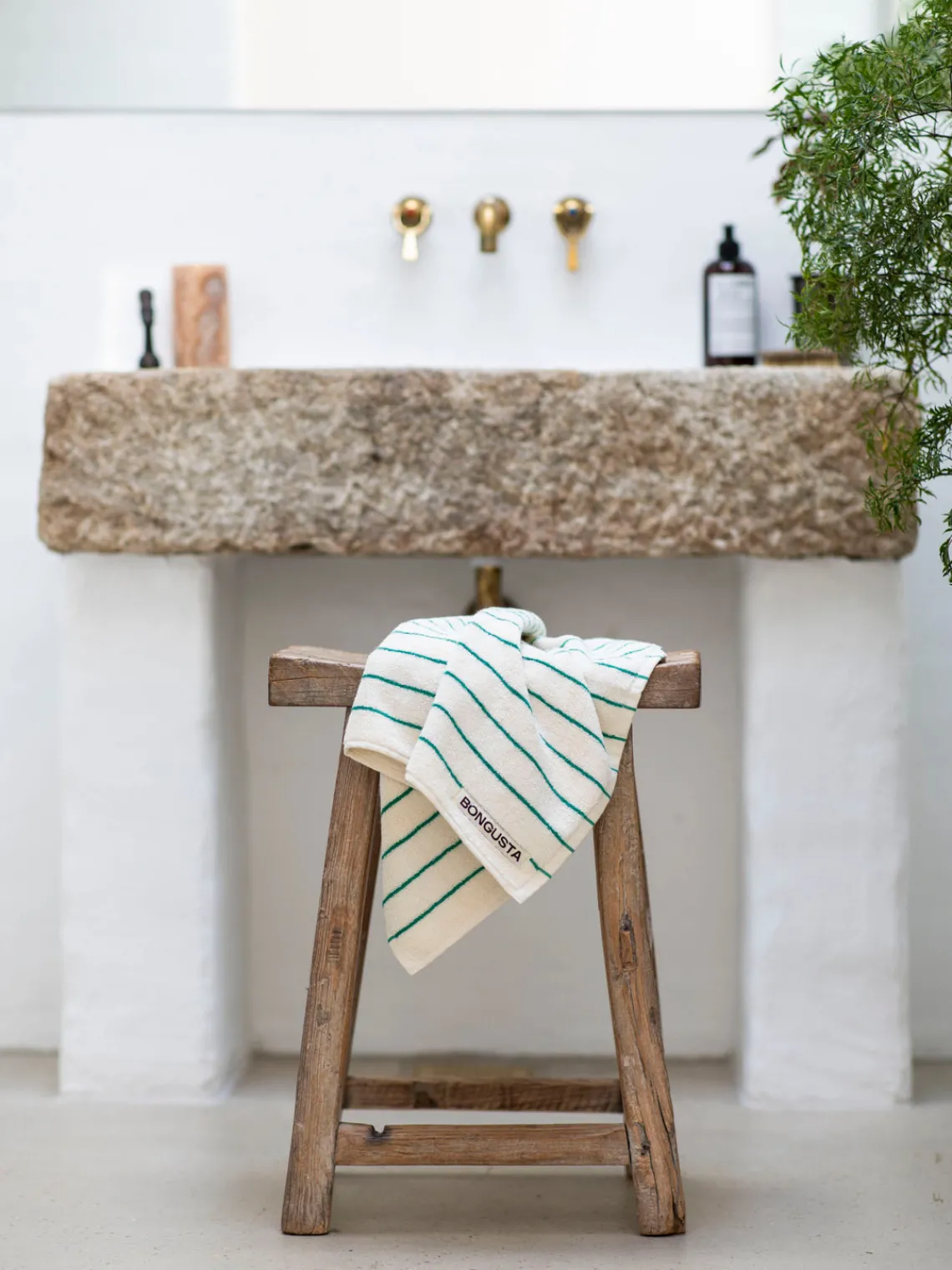 Toallas|Mantas>Bongusta Toalla de mano de algodón Naram Blanco, verde turquesa