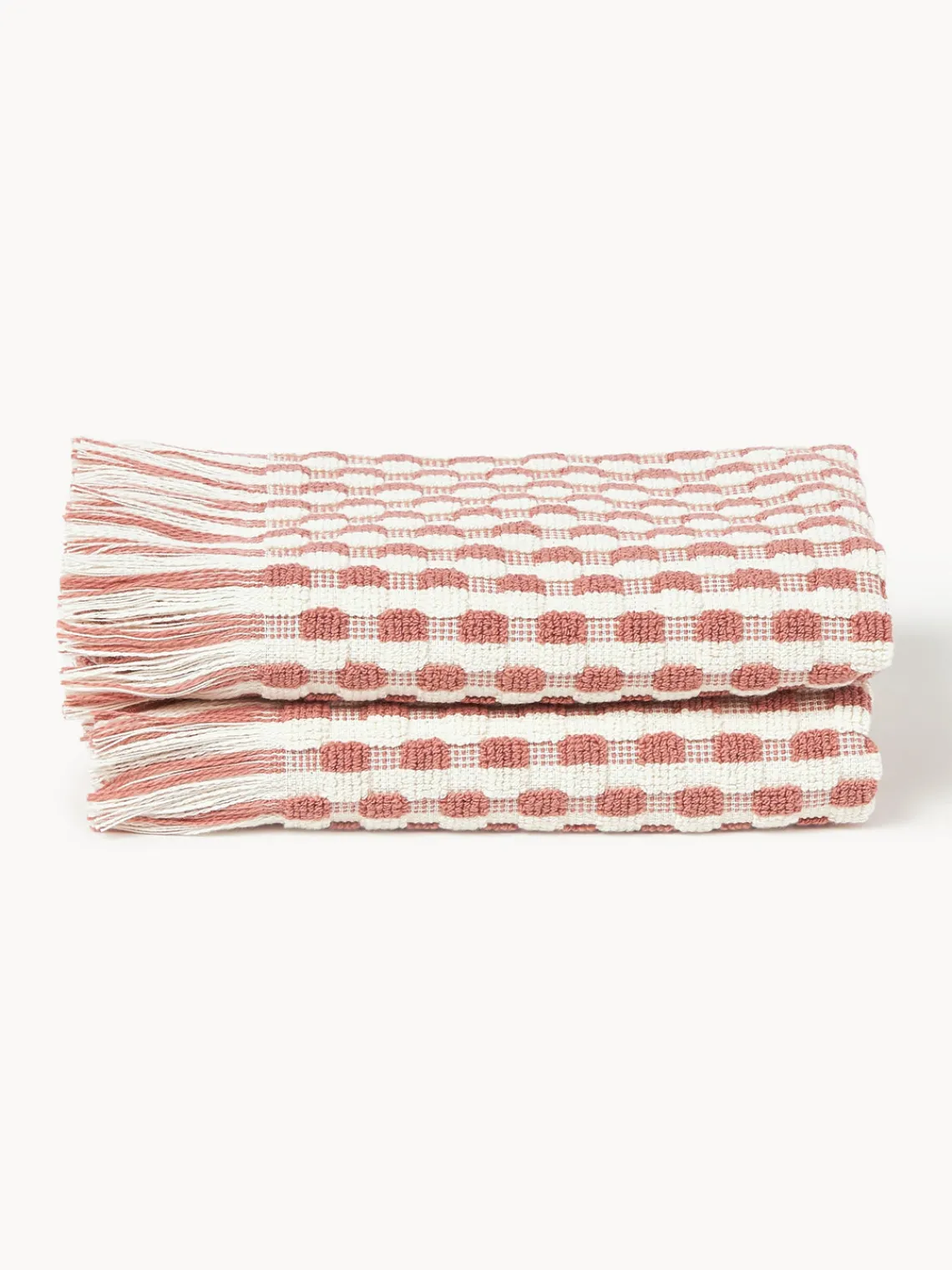 Toallas|Mantas>Westwing Collection Set de toallas texturizadas Yara, tamaños diferentes Blanco Off White, rosa oscuro