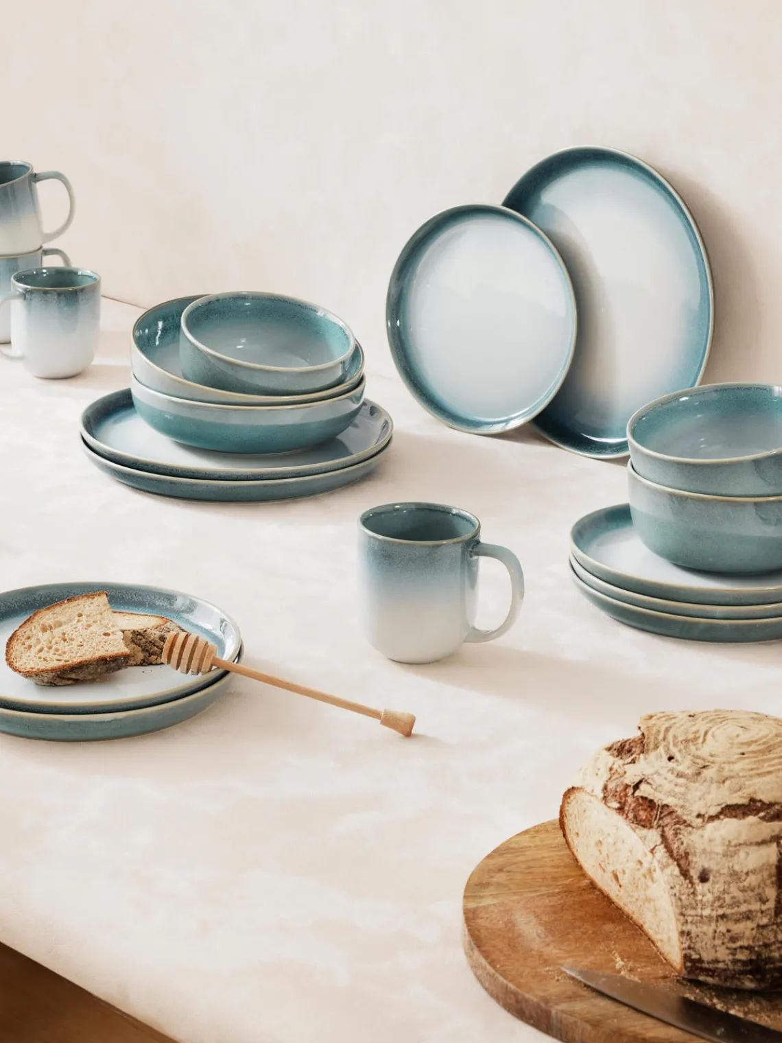 Vajilla de 12 piezas que consta de cuatro platos llanos, cuatro platos postre y cuatro platos hondos.